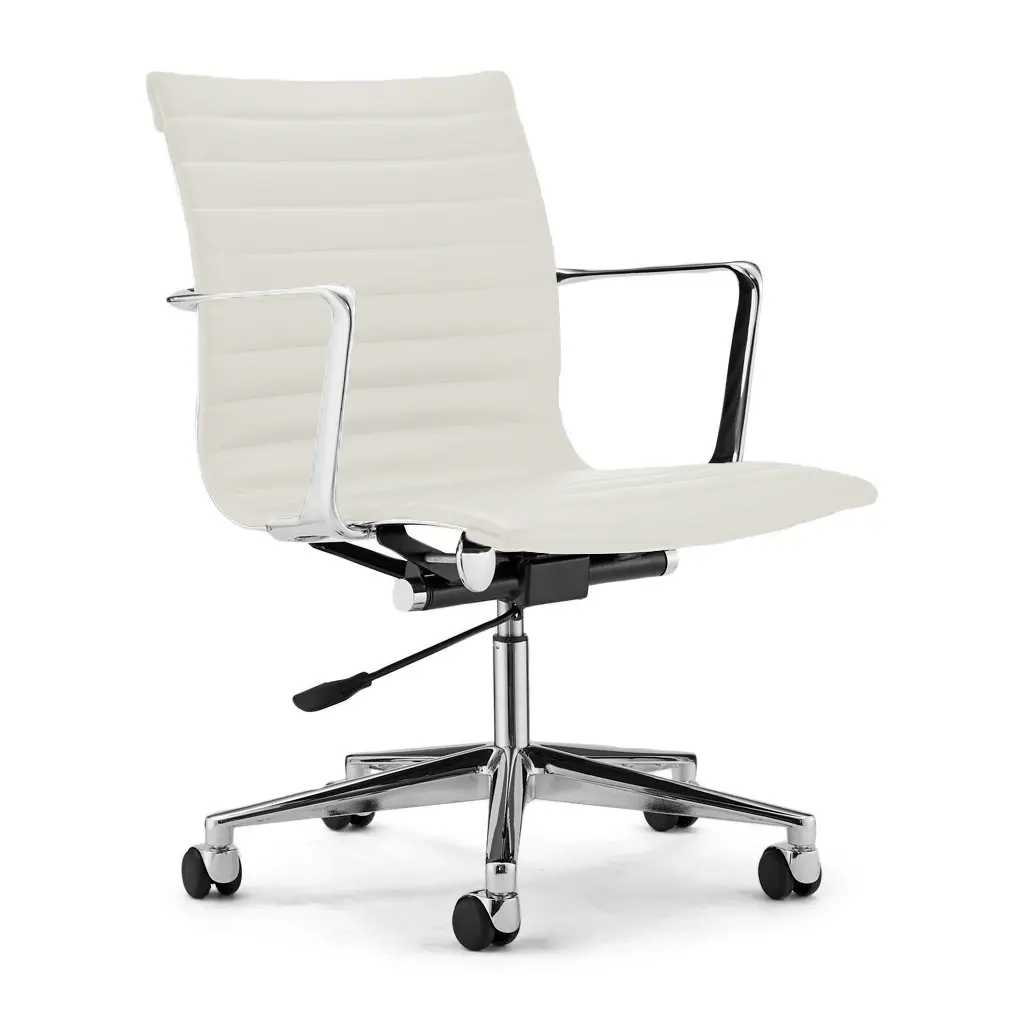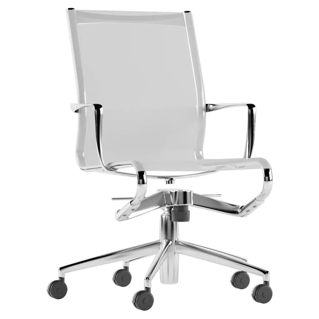 Alias 445 Rollingframe+ Tilt 47 Chair in White Seat with Chromed Aluminum Frame by Alberto MedaHeight adjustable chair with arms, with soft (or hard or soft breaking ) castors and 5-star swivel base with tilting mechanism. Structure made of extruded aluminium profile and die-cast aluminium elements. Seat and back in fire retardant PVC covered polyester mesh, in eco-leather Serge Ferrari®, in fabric Camira® or Kvadrat® or in Pelle Frau® leather. on requestBorn in Lenno Tremezzina (Como), in 1945, he graduated in mechanical engineering from the Milan Polytechnic. In 1987 and 1989 he designed two historic chairs for Alias: lightlight and softlight. The former is on show in the permanent collection in the MoMA in New York. The first Alias chairs in the frame range date from 1994. These were followed in 2003 by frametable, in 2007 by the out collection teak, in 2009 by the biplane table and in 2011 hydrochiar. In 2013, the oscillating tilt mechanism was introduced on the plus versions of the rolling frame and meeting frame chairs, later to be enhanced by a new soft finish in 2015. He lives and works in Milan.Additional Information:Material: Aluminum, upholsteryUpholstery finish: Camira® A Xtreme Adobo (YS165)Frame finish: Chromed (CR)Dimensions: 73 W x 73 D x 95-105 H cmSeat height: 45-55 cm Available in other frame options: Polished (AB), white (A019), black (A011), graphite grey (A022), sand (A047), light grey (A051),“cipria” sand (A039), coral red (A041), aubergine (A042)Available in other upholstery finish options: White - only for lacquered and chromed versions (R009), black (R007), grey melange (R028), light grey (R003), dark grey (R006), metallic grey (R020), “cipria” sand (R011), coral red (R024), aubergine (R025). Stamskin® Top, Urban, Maple, Remix, Tonus, Canvas, Divina, Foss, Hallingdal 65, Hero, Steelcut, Steelcut Trio, SC ColorSphere®: white SC04 latte - for lacquered and chromed versions only (B004), black SC 20 inchiostro (B020), grey SC26 topo (B026), brown SC56 siena (B056), brown SC80 bruno havana (B080), brown SC57 torba (B057), other colors available on requestAvailable in other various options
