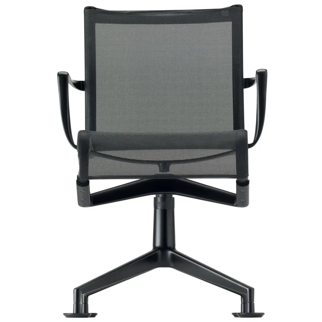Alias 447 Meetingframe+ Tilt 47 Chair in Grey Mesh with Lacquered Aluminum Frame by Alberto MedaSelf adjusting swivel chair with arms, with 4-star base with glides and tilting mechanism. Structure made of extruded aluminium profile and die-cast aluminium elements. Seat and back in fire retardant PVC covered polyester mesh, in eco-leather Serge Ferrari®, in fabric Camira® or Kvadrat® or in Pelle Frau® leather.Born in Lenno Tremezzina (Como), in 1945, he graduated in mechanical engineering from the Milan Polytechnic. In 1987 and 1989 he designed two historic chairs for Alias: lightlight and softlight. The former is on show in the permanent collection in the MoMA in New York. The first Alias chairs in the frame range date from 1994. These were followed in 2003 by frametable, in 2007 by the out collection teak, in 2009 by the biplane table and in 2011 hydrochiar. In 2013, the oscillating tilt mechanism was introduced on the plus versions of the rolling frame and meeting frame chairs, later to be enhanced by a new soft finish in 2015. He lives and works in Milan.Additional Information:Material: Textured lacquered aluminum, meshUpholstery finish: Mesh B Dark grey (R006)Frame finish: Light Grey (A051)Dimensions: 71 W x 71 D x 91 H cmSeat height: 47 cm Available in other frame options: Polished (AB), chromed (CR), white (A019), black (A011), graphite grey (A022), sand (A047), “cipria” sand (A039), coral red (A041), aubergine (A042)Available in other upholstery finish options: White - only for lacquered and chromed versions (R009), black (R007), grey melange (R028), light grey (R003), metallic grey (R020), “cipria” sand (R011), coral red (R024), aubergine (R025), Stamskin® Top, Urban, Xtreme, Maple, Remix, Tonus, Canvas, Divina, Steelcut, Foss, Hallingdal 65, Hero, Steelcut, Steelcut Trio, SC ColorSphere®: white SC04 latte - for lacquered and chromed versions only (B004), black SC 20 inchiostro (B020), grey SC26 topo (B026), brown SC56 siena (B056), brown SC57 torba (B057), brown SC80 bruno havana (B080), other colors available on requestAvailable in other various options
