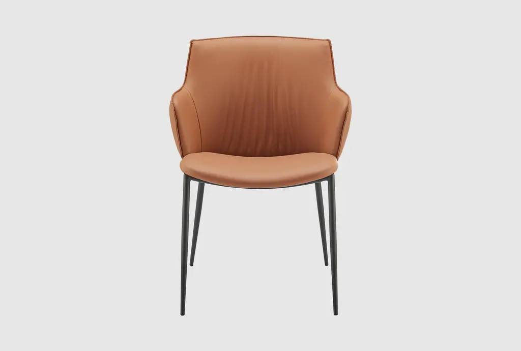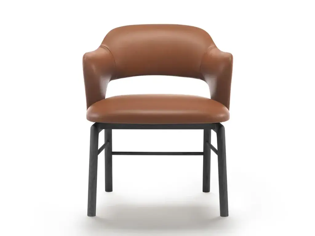 ALMA is an upholstered chair with armrests and a fixed wooden base.FeaturesStructure: with metal and molded polyurethane armrests, covered in protective fabric upholsteryFixed base: made of solid Canaletto walnut wood in raw, natural, extra-dyed finishes, or solid ash wood in natural, walnut-stained, teak-stained, wenge-stained, brown-stained, or ebony-stained finishes, or solid oak wood in raw finish. Ground support on thermoplastic tipsUpholstery: non-removable, available in both fabric and leather versionsAlma is a collection of chairs/armchairs with a strong personality, balanced proportions, and enveloping lines, which immediately inspire a sense of comfort combined with great formal elegance.Agile and lightweight, thanks to its swivel aluminum base, it adapts to all dining tables from the brand but also meets the growing demand for creating 'home office' spaces within homes, or in work environments such as executive offices, meeting rooms, or prestigious conference halls. The technique of aluminum die-casting is used to create both the base and the sinuous seat and back shell, designed specifically for the piece, as well as the practical pivoting wheels that make it easy to move the armchair.This armchair is available in both fixed and swivel versions, with and without armrests.