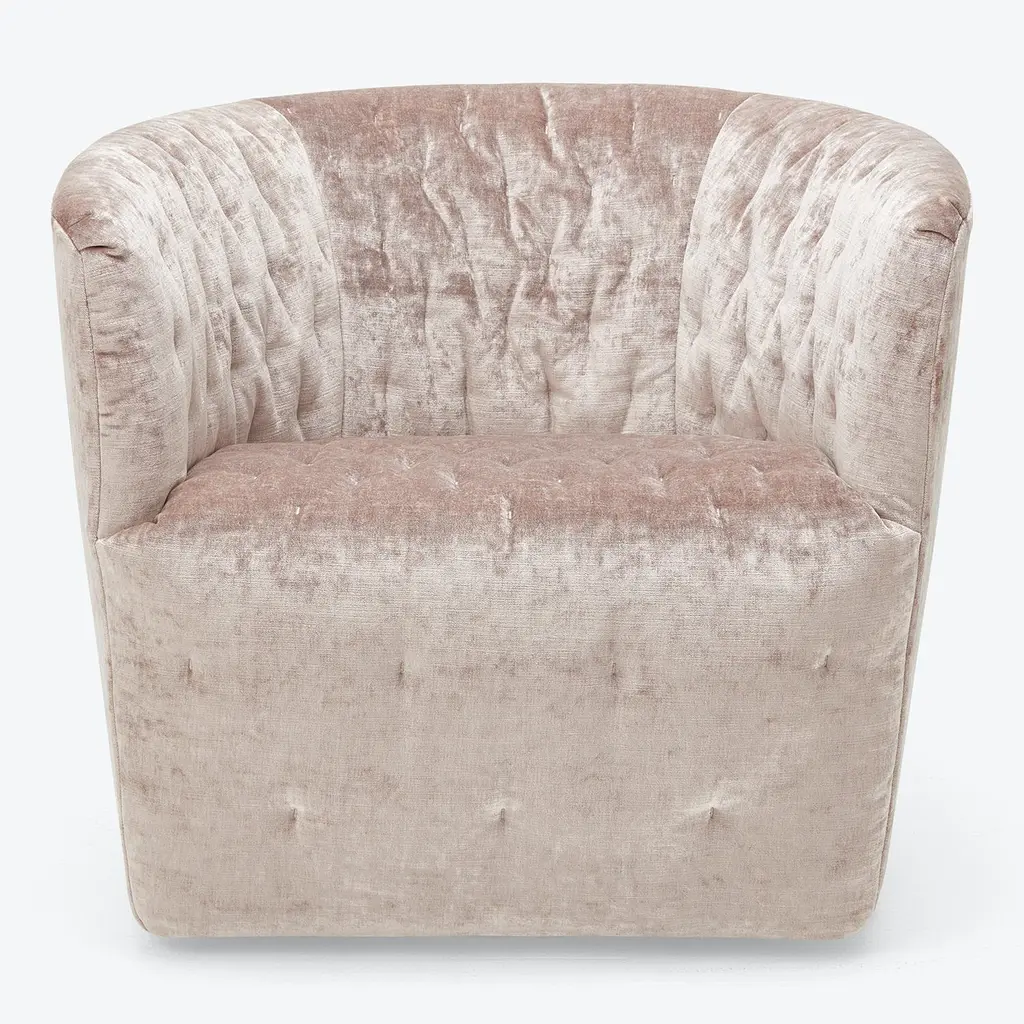 Step into a world of elegance with the Amelia Swivel Chair, a stunning fusion of French haute couture and contemporary design. Handcrafted with meticulous attention to detail, the exquisite quilted stitching enhances its graceful curves, making a striking statement in any room. Measuring 29" in width, 26" in height, and 28" in depth—with a seat height of 16.5" and a seat depth of 20.5"—this chair is compact yet undeniably captivating. Perfect for small living spaces, cozy nooks, bedrooms, and living rooms, the Amelia Swivel Chair fits seamlessly into any environment, adding an air of sophistication and charm. Available in a palette of jewel-toned cotton velvets, the Amelia exudes opulence and style, instantly transforming your ambiance. Its rich colors invite warmth and depth, making it a favorite among ABC customers who appreciate its aesthetic appeal and luxurious feel. The removable slipcover offers effortless maintenance and allows for quick style refreshes, adapting seamlessly to your evolving decor preferences. This feature ensures that your chair remains as versatile as it is stylish, perfect for accommodating changing tastes or seasonal decor updates. With plush foam fill, the Amelia Swivel Chair envelops you in comfort, inviting you to sink in and unwind. Whether you’re hosting guests for an intimate gathering or enjoying a quiet moment with a good book, this chair creates a cozy atmosphere that enhances every occasion. As a designer piece, the Amelia not only serves as a practical seating solution but also as a chic accent that elevates your home decor. Its whimsical charm captivates the senses, making it a delightful addition to any interior. Transform your living space with the Amelia Chair, where style meets comfort in perfect harmony. Visit us at ABC Carpet and Home, 888 Broadway, to work with a design specialist who can help you explore different colors and textiles, ensuring that your selection perfectly complements your unique style. Discover the allure of the Amelia Swivel Chair and elevate your home with a piece that resonates with sophistication and charm, making it a cherished favorite among those who appreciate the finer things in life.