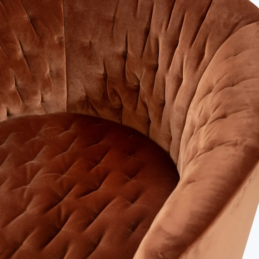 Step into a world of elegance with the Amelia Swivel Chair, a stunning fusion of French haute couture and contemporary design. Handcrafted with meticulous attention to detail, the exquisite quilted stitching enhances its graceful curves, making a striking statement in any room. Measuring 29" in width, 26" in height, and 28" in depth—with a seat height of 16.5" and a seat depth of 20.5"—this chair is compact yet undeniably captivating. Perfect for small living spaces, cozy nooks, bedrooms, and living rooms, the Amelia Swivel Chair fits seamlessly into any environment, adding an air of sophistication and charm. Available in a palette of jewel-toned cotton velvets, the Amelia exudes opulence and style, instantly transforming your ambiance. Its rich colors invite warmth and depth, making it a favorite among ABC customers who appreciate its aesthetic appeal and luxurious feel. The removable slipcover offers effortless maintenance and allows for quick style refreshes, adapting seamlessly to your evolving decor preferences. This feature ensures that your chair remains as versatile as it is stylish, perfect for accommodating changing tastes or seasonal decor updates. With plush foam fill, the Amelia Swivel Chair envelops you in comfort, inviting you to sink in and unwind. Whether you’re hosting guests for an intimate gathering or enjoying a quiet moment with a good book, this chair creates a cozy atmosphere that enhances every occasion. As a designer piece, the Amelia not only serves as a practical seating solution but also as a chic accent that elevates your home decor. Its whimsical charm captivates the senses, making it a delightful addition to any interior. Transform your living space with the Amelia Chair, where style meets comfort in perfect harmony. Visit us at ABC Carpet and Home, 888 Broadway, to work with a design specialist who can help you explore different colors and textiles, ensuring that your selection perfectly complements your unique style. Discover the allure of the Amelia Swivel Chair and elevate your home with a piece that resonates with sophistication and charm, making it a cherished favorite among those who appreciate the finer things in life.