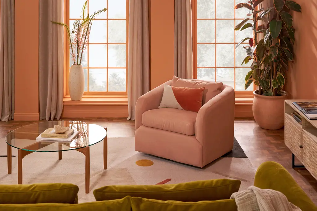 A contemporary update to the swivel arm chairs of the ‘70s, the Amelia will have you turning heads from every angle. With its simplified soft arm profile, this chair makes the perfect contemporary update to a classic silhouette. The definition of a transitional piece, the Amelia helps balance out a space’s decor, no matter the style.