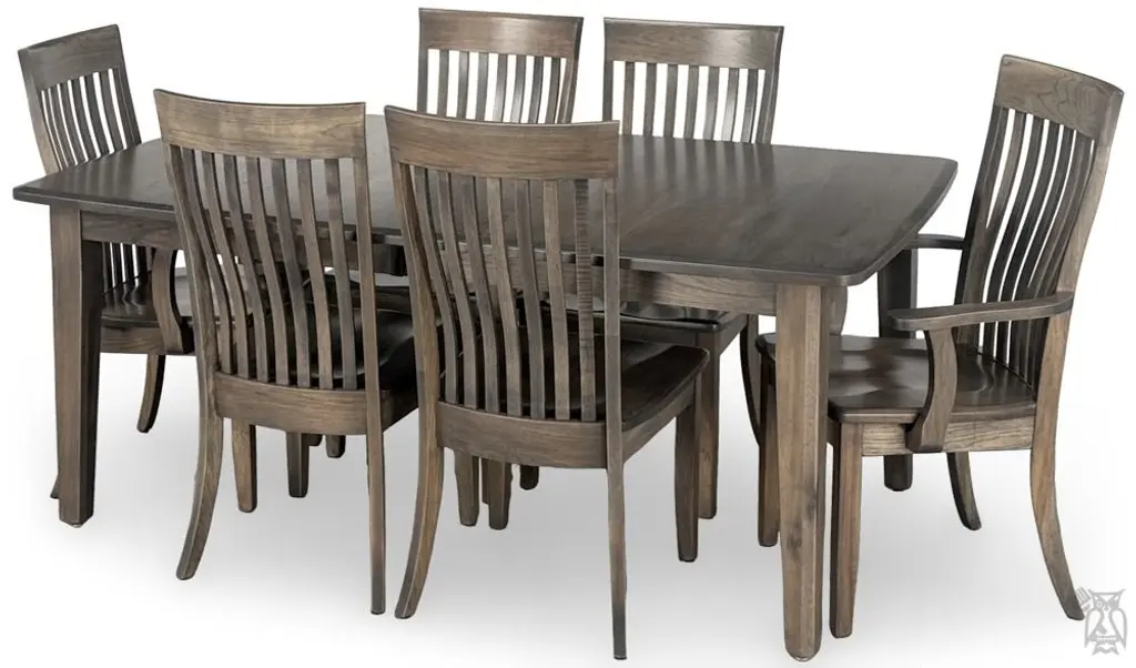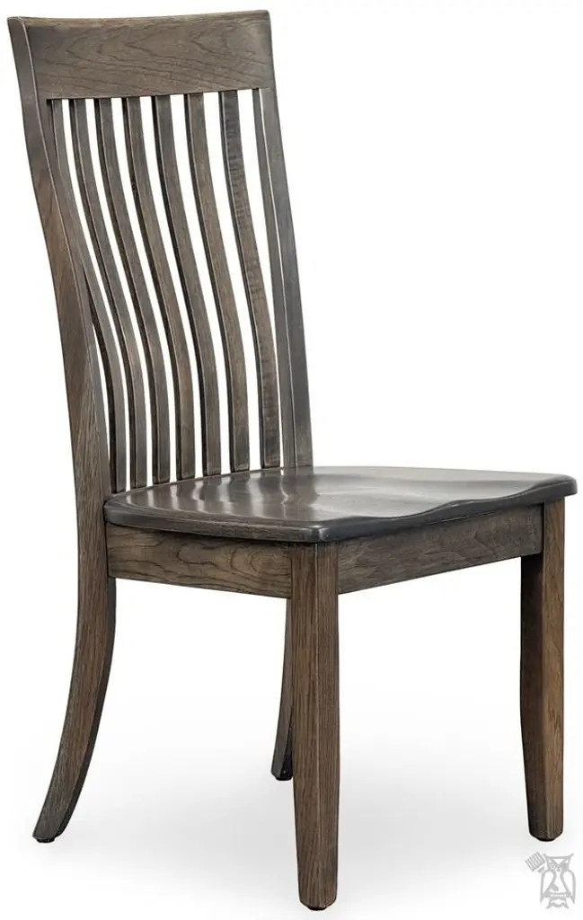 Amish Crafted Solid Rustic Hickory Wood Portland Side Chair in Antique Slate Finish. This item is stocked in Solid Rustic Hickory Wood with Antique Slate Finish or special order wood and color. Chair priced with wood seat or may be ordered with fabric or leather seat. Matching arm chair,ᅠ stationary or swivel stools 24" or 30" seats available. Rustic Hickory: revealing all of the tree's naturally beautiful markings and color variations, Rustic Hickory gives tables a very rustic look. Janka scale: 1820. Each collection has a full range of table sizes, side chairs, arm chairs, stools, benches, servers and chinas. Build Options: (no change in price) Choose Brown Maple, Rustic Cherry, Rustic Hickory, Red Oak, Rustic Quartersawn White Oak, Rustic Red Oak, Ambrosia Maple, Tiger Maple, Flat Sawn White Oak or Elm Choose any single-tone or two-tone factory finish or paint. Add optional rub-thru or glazing. Hundreds of color options are available. Add optional light, medium, heavy distressing or change the amount of rough-sawn texture Choose wood or upholstered chair seat All Amish Heirloom Furniture is handcrafted by hand in the heart of Ohio just for you. All furniture is hand-crafted from 100% solid wood. The wood is protected by a sealant offering excellent moisture and heat resistance. Visit our store to see all of your options to personalize this furniture your way. Download the Amish Heirlooms Catalog in the Resources tab to see styles, sizes, woods & colors. Matching pieces sold separately. No particle board. Made in the USA. Chairs fully assembled. Manufacturer: Amish Heirlooms by Hoot Judkins.