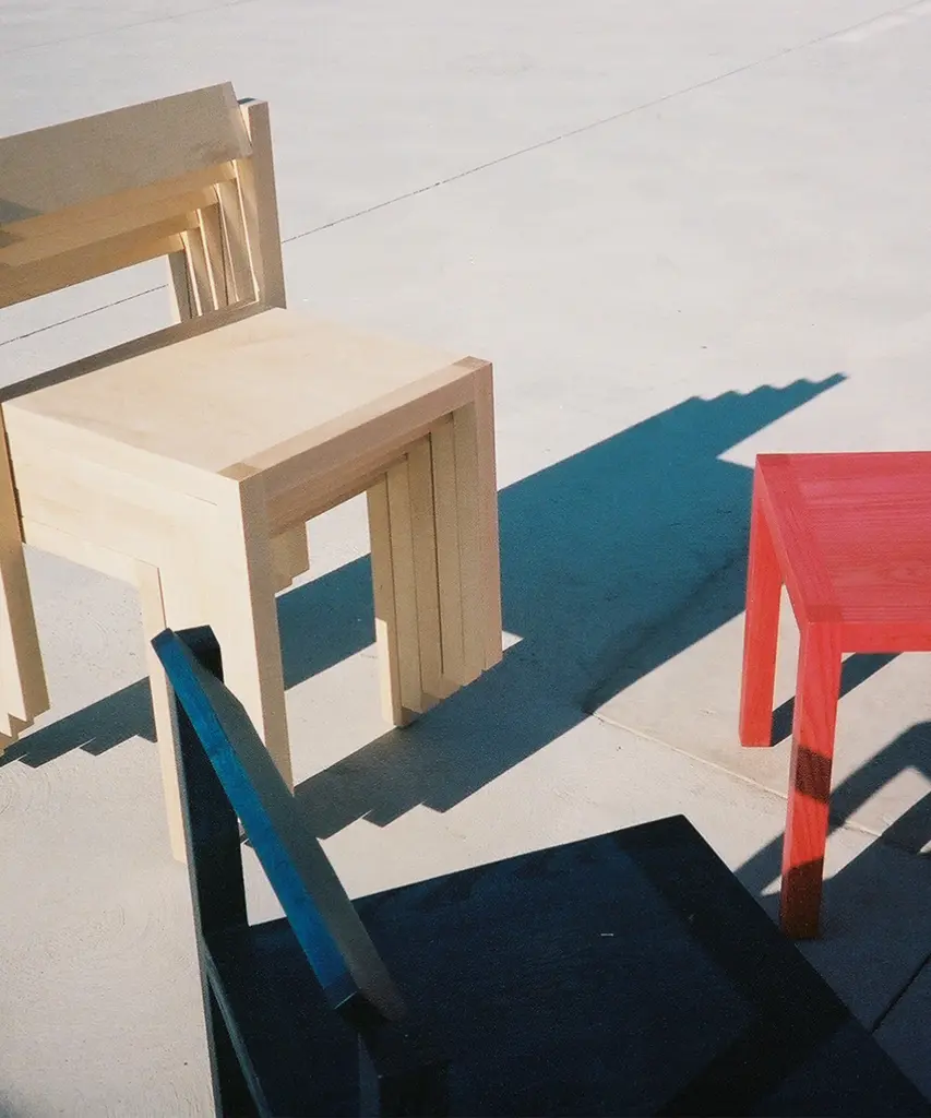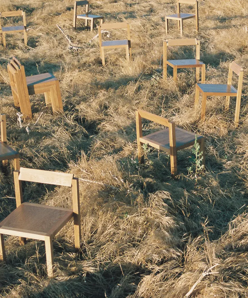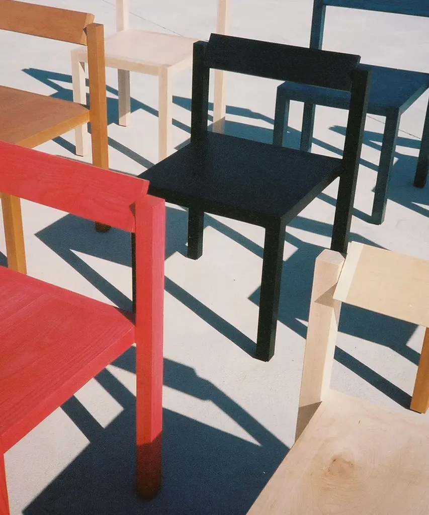 A stackable hand-built wooden chair with swiveling backrest.Designed to emphasize linear simplicity, the “Box chair” has an air-like quality that allows you to see through the chair as much as possible. The swiveling backrest and oversized plank seat help create a comfortable and functional place to sit. Built using solid wood with equal dimension in all axes creating a cube that pays homage to the "wassily chair" and Bauhaus emotions.