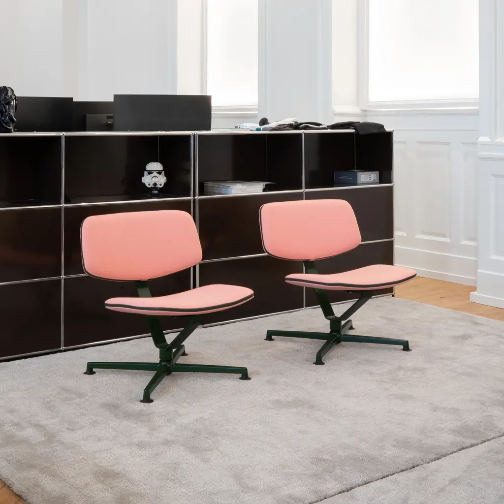 The ARBA Lounge Chair is a simple yet refined composition of two molded plywood elements, a cross-like structure of bent metal profiles and a die cast aluminum base. In its clarity, the composition communicates directly with the user. The chair has nothing to hide and yet it surprises us once we sit in it. Seat and back are perfectly shaped and positioned, the central spine adds the dynamic movement typical of flat sheet metal, to which the base adds a pleasant swivel function. The chair keeps the formal purity of an experimental prototype while it is a well-thought and precisely made industrial product that comes in a flat box and can be mounted with a few simple actions. Features