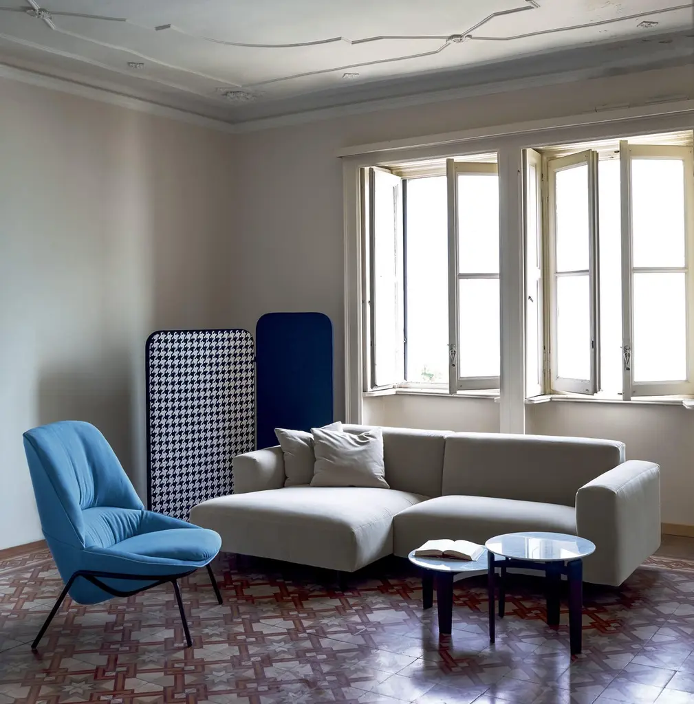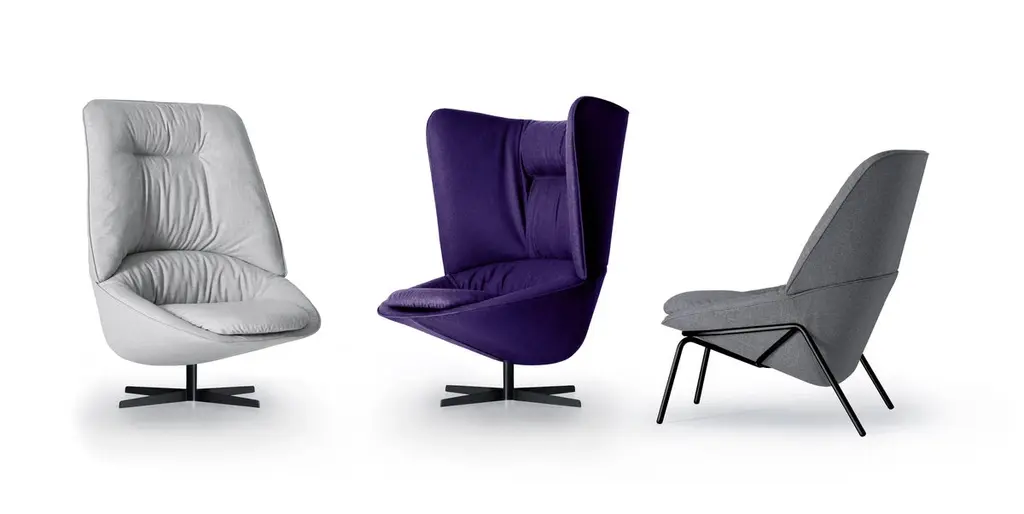Arflex Ladle Armchair With Low Backrest & Fabric And Metal Base By Luca Nichetto