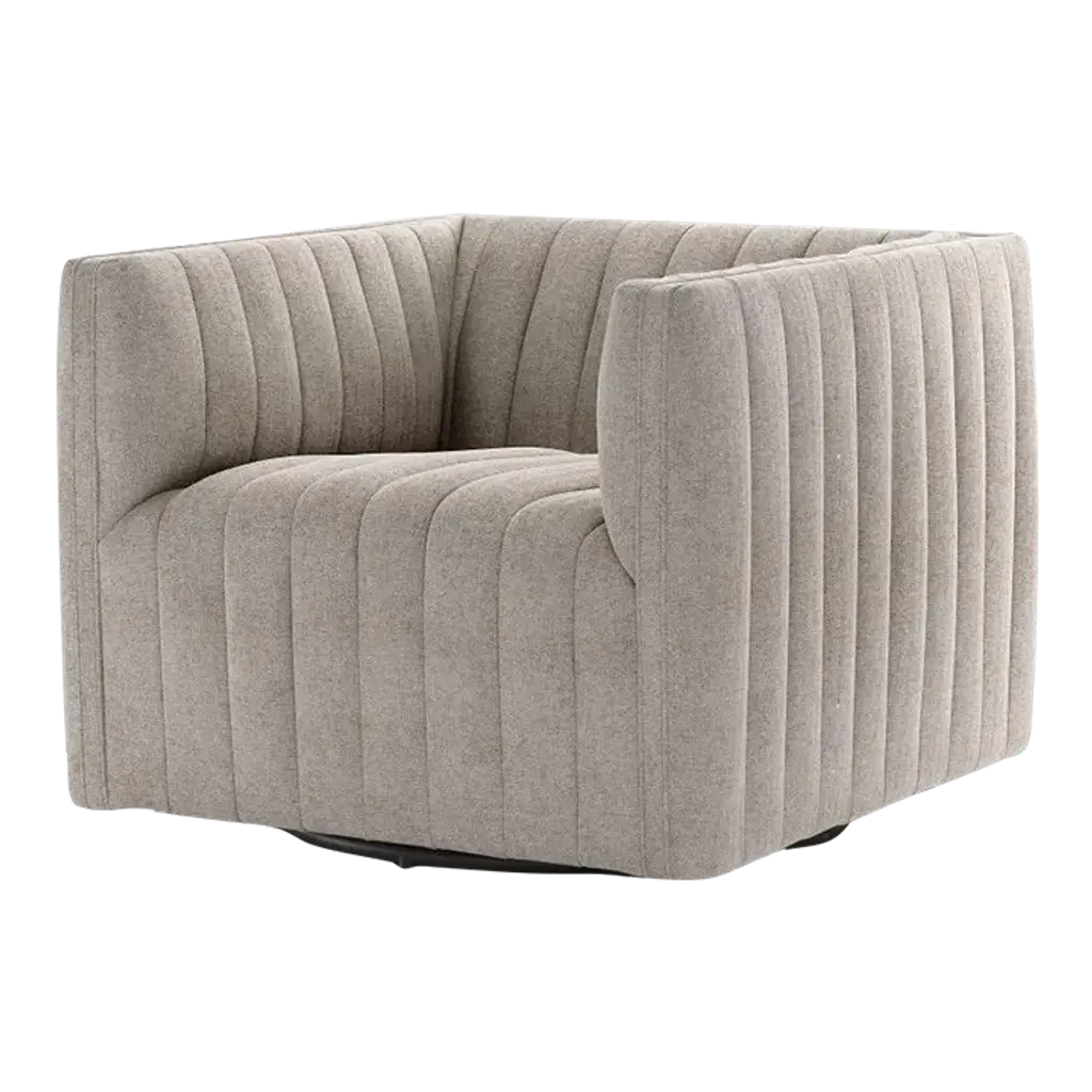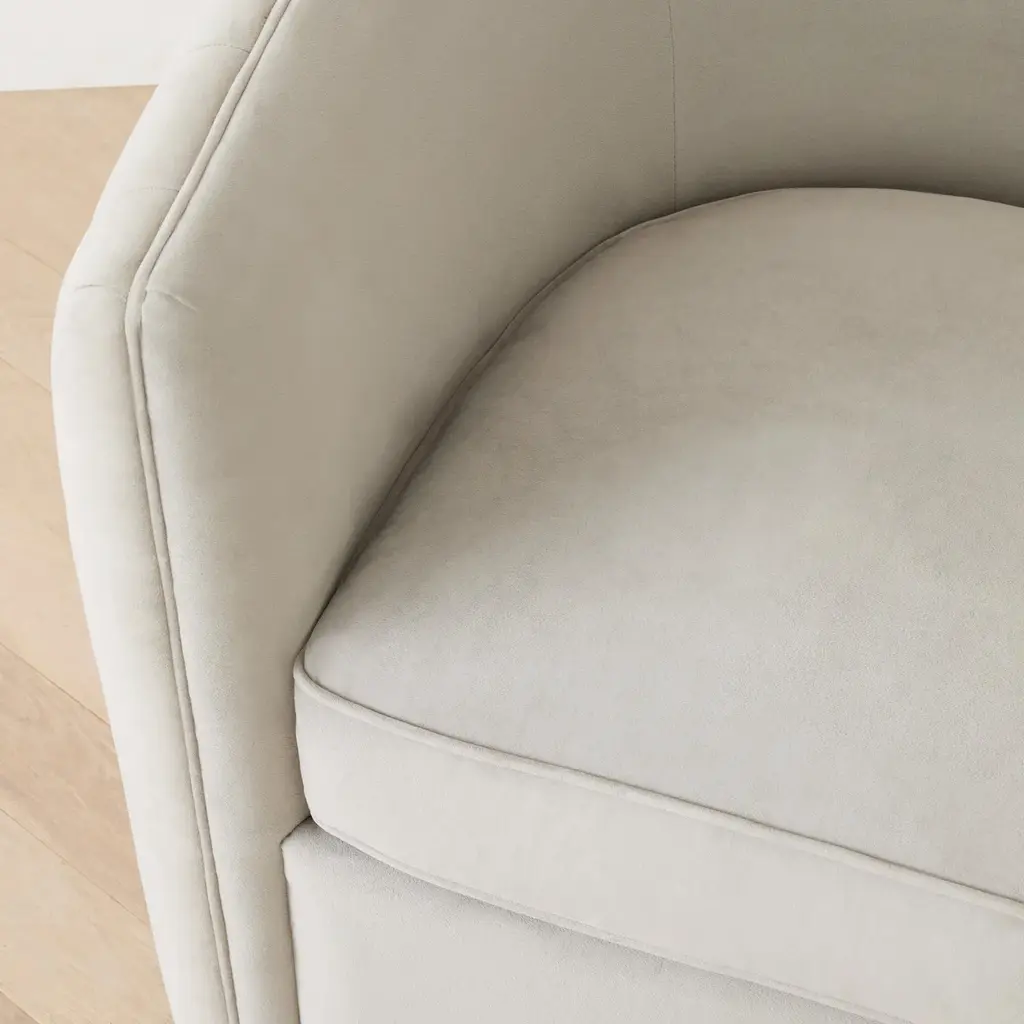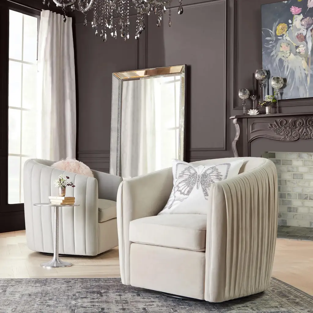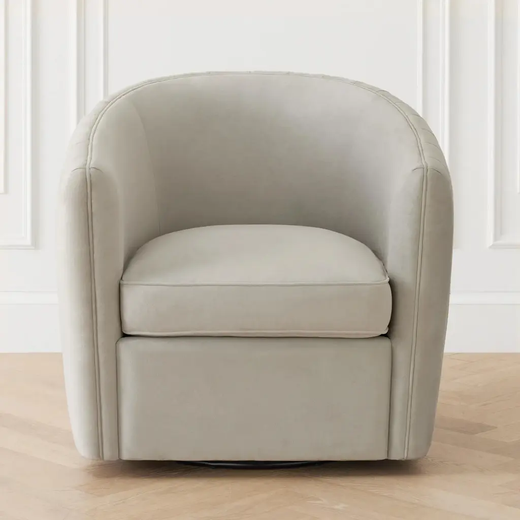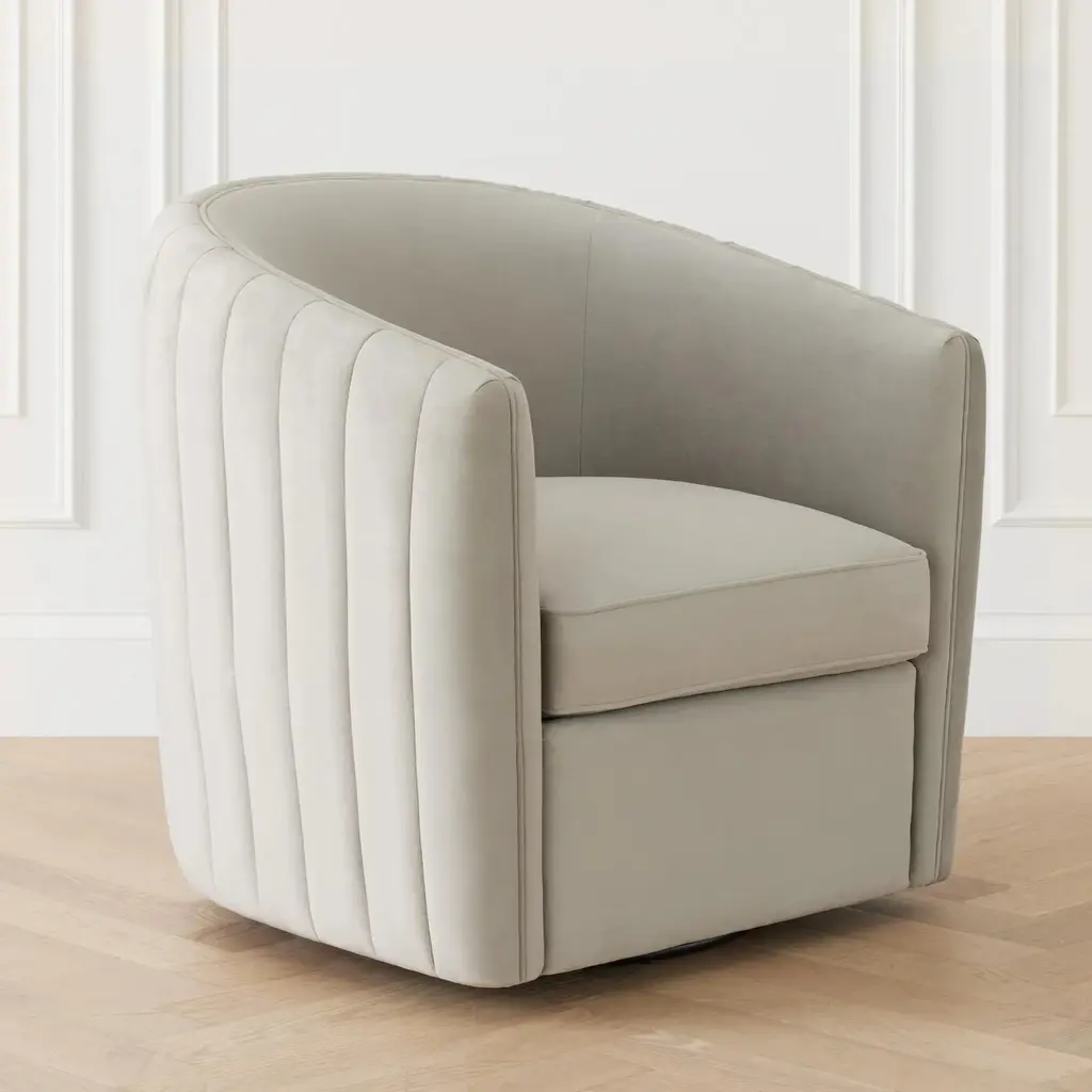 Offering style at every angle, our Aria chair is framed in kiln-dried hardwood with a classic barrel silhouette and convenient swivel feature. Choose from channeled, pleated, or tufted tailoring in over 30 gorgeous fabrics for a look you’ll love. Shown in Bella Velvet Dove.Z Gallerie exclusive Customize it! Available in over 20 fabrics. Custom Orders: Custom Furniture is manufactured especially for you, which is why we do not accept cancellations, exchanges, or returns.