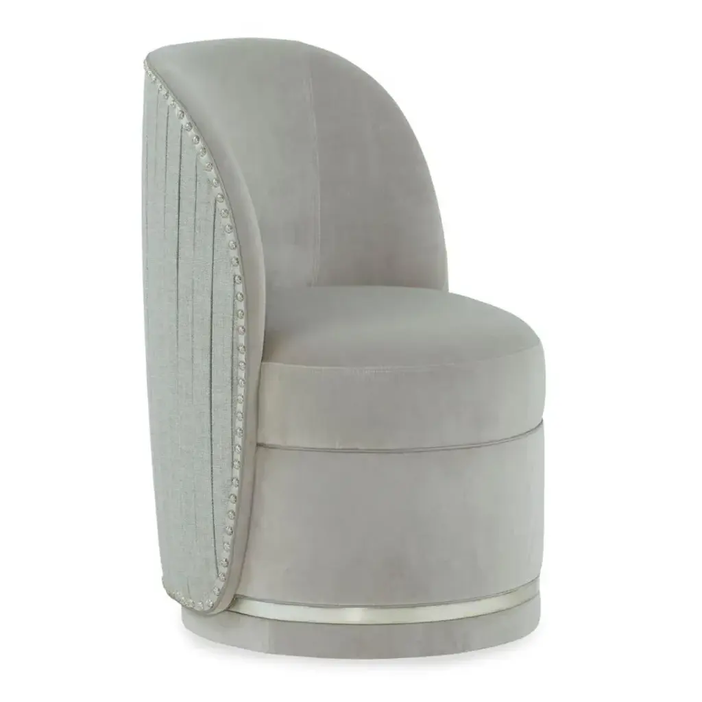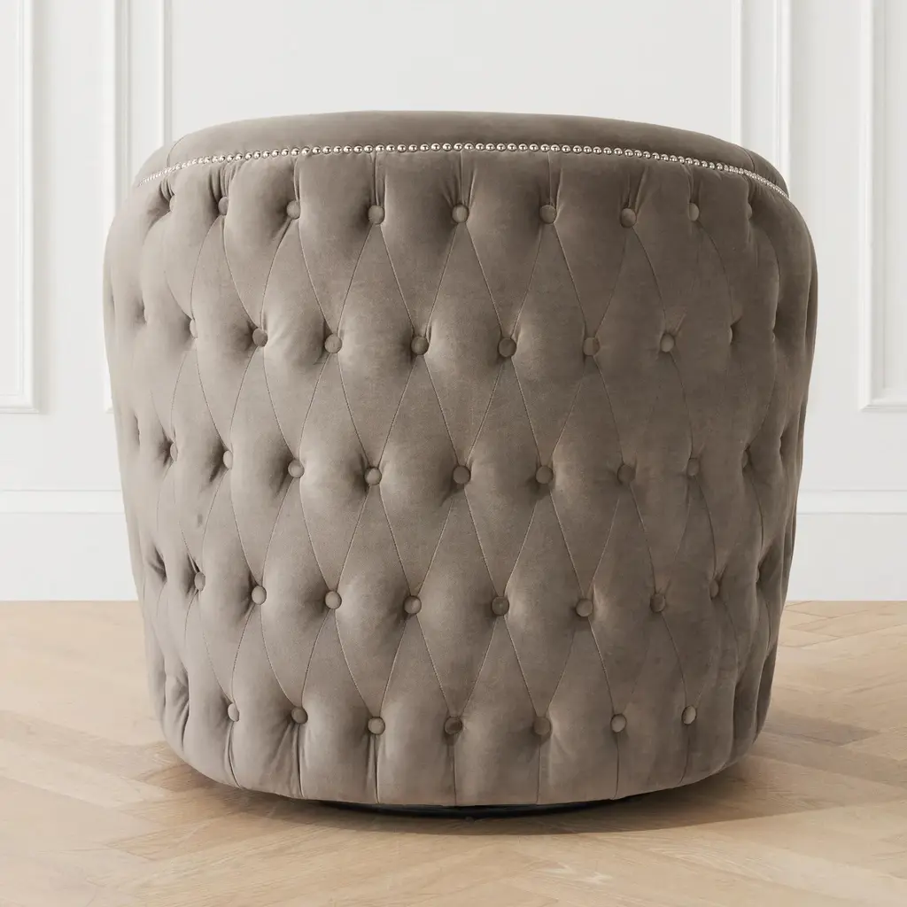 Offering style at every angle, our Aria chair is framed in kiln-dried hardwood with a classic barrel silhouette and convenient swivel feature. Choose from channeled, pleated, or tufted tailoring in over 20 gorgeous fabrics for a look you’ll love. Shown in Bella Velvet Otter with bright nickel nailheads.Z Gallerie exclusive Customize it! Available in over 15 fabrics. Custom Orders: Custom Furniture is manufactured especially for you, which is why we do not accept cancellations, exchanges, or returns.