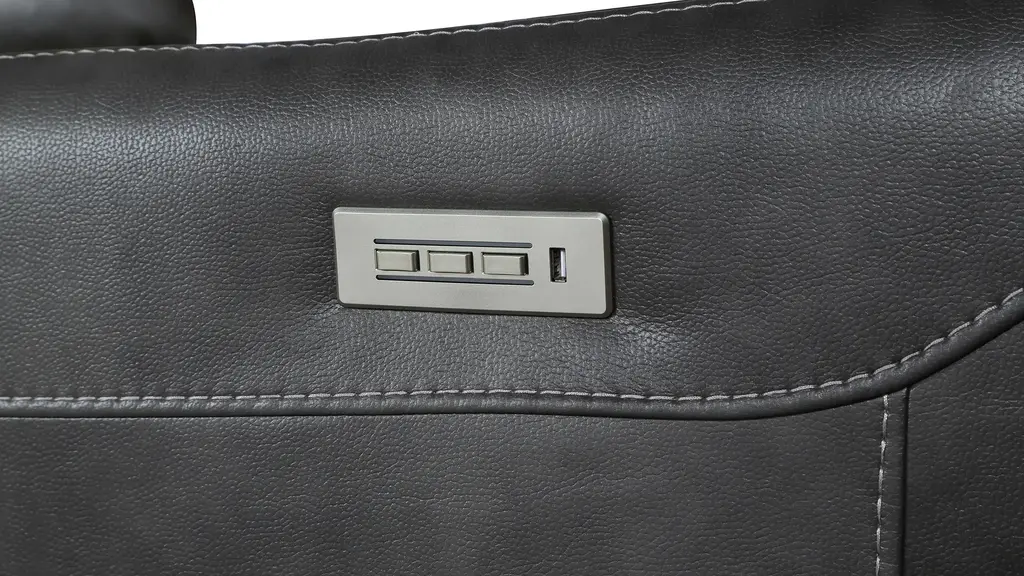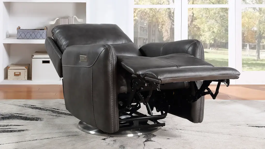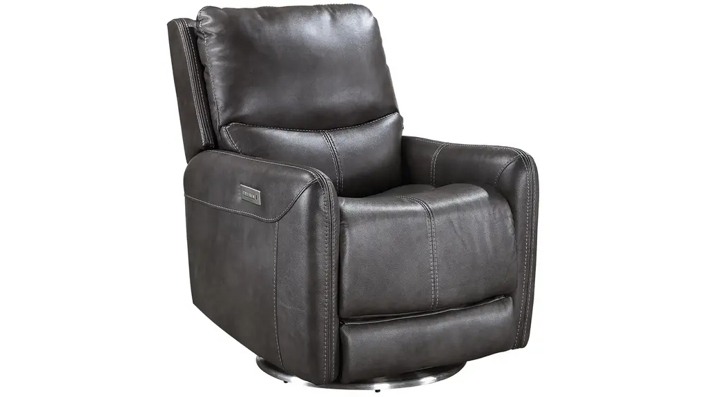 Athens Triple Power Swivel Recliner features pencil arms and power footrest, power headrest and power lumbar all in a chair that swivels 360 degrees. Covered in a charcoal faux-leather with baseball stitching, Athens is sure to become the favorite chair in any household.