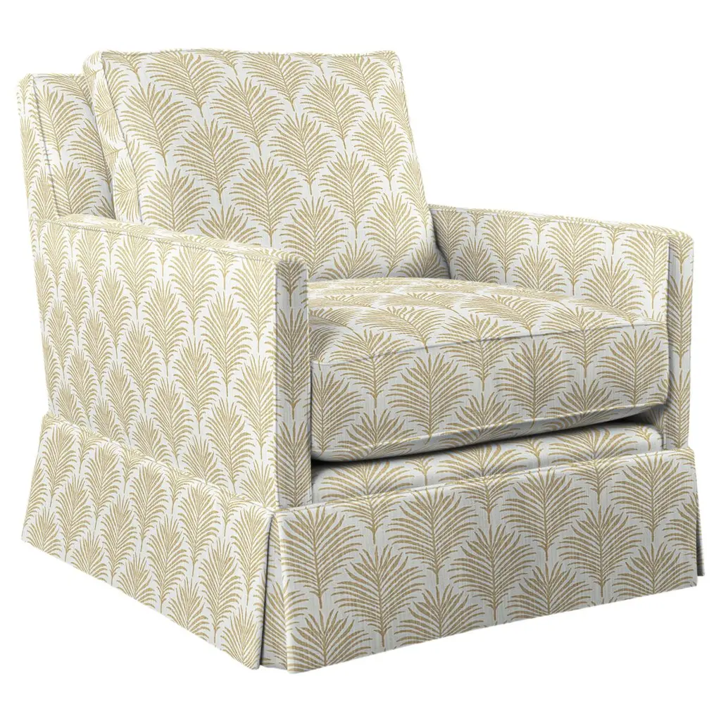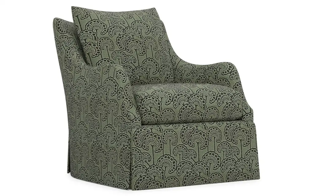 Exclusive to One Kings Lane: This swivel chair is the perfect blend of transitional and traditional elements with the petite track arm and elegant skirt. Constructed of an engineered hardwood-laminate frame, eight-way hand-tied suspension system, and a spring foam cushion with down-proof ticking ensure long-lasting comfort and support. Each piece is handcrafted by skilled artisans in High Point, NC and offers a lifetime warranty on the frame and suspension system and a limited lifetime warranty on the seat cushion.