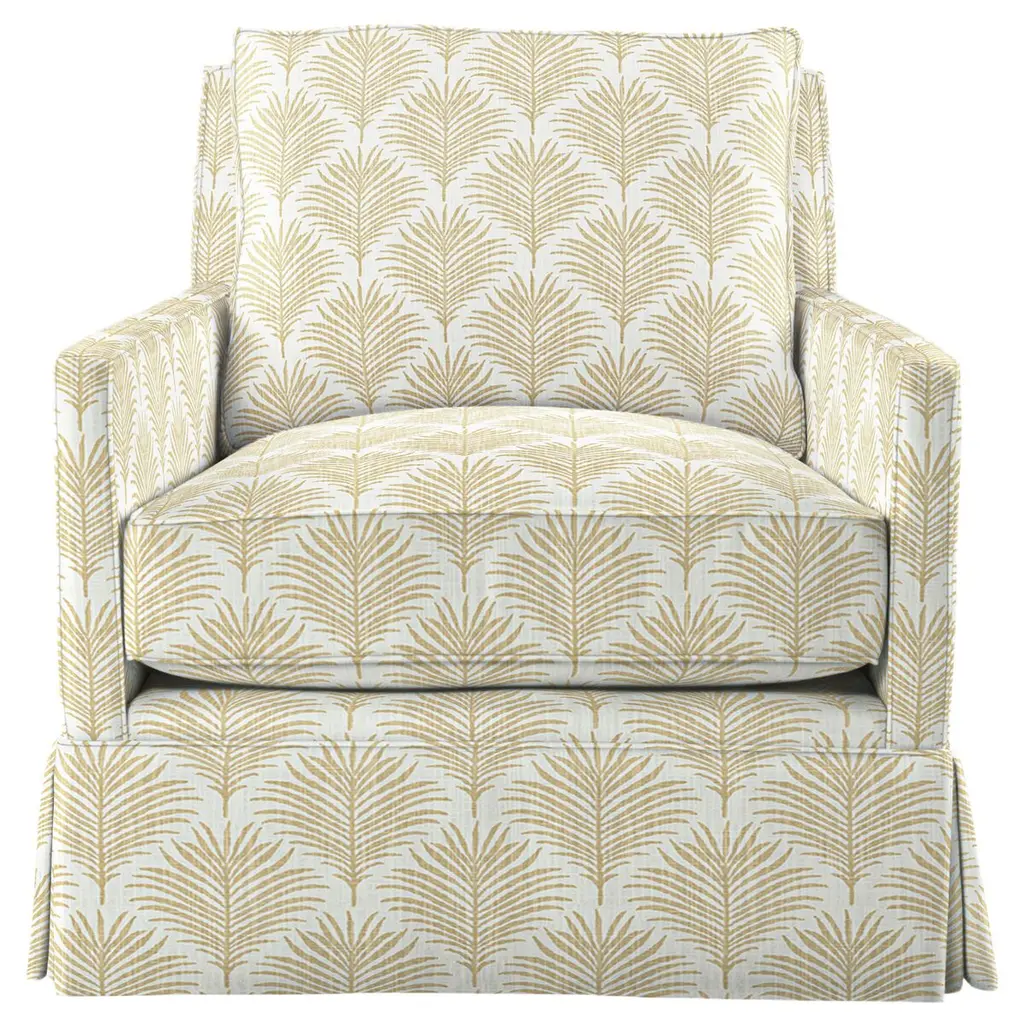 Exclusive to One Kings Lane: This swivel chair is the perfect blend of transitional and traditional elements with the petite track arm and elegant skirt. Constructed of an engineered hardwood-laminate frame, eight-way hand-tied suspension system, and a spring foam cushion with down-proof ticking ensure long-lasting comfort and support. Each piece is handcrafted by skilled artisans in High Point, NC and offers a lifetime warranty on the frame and suspension system and a limited lifetime warranty on the seat cushion.