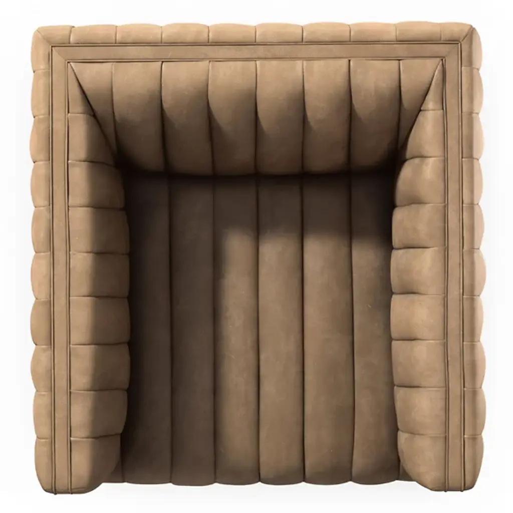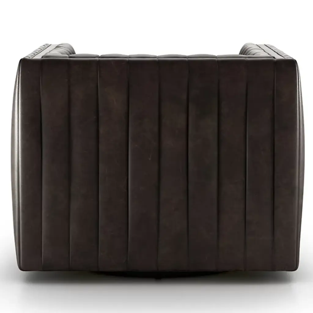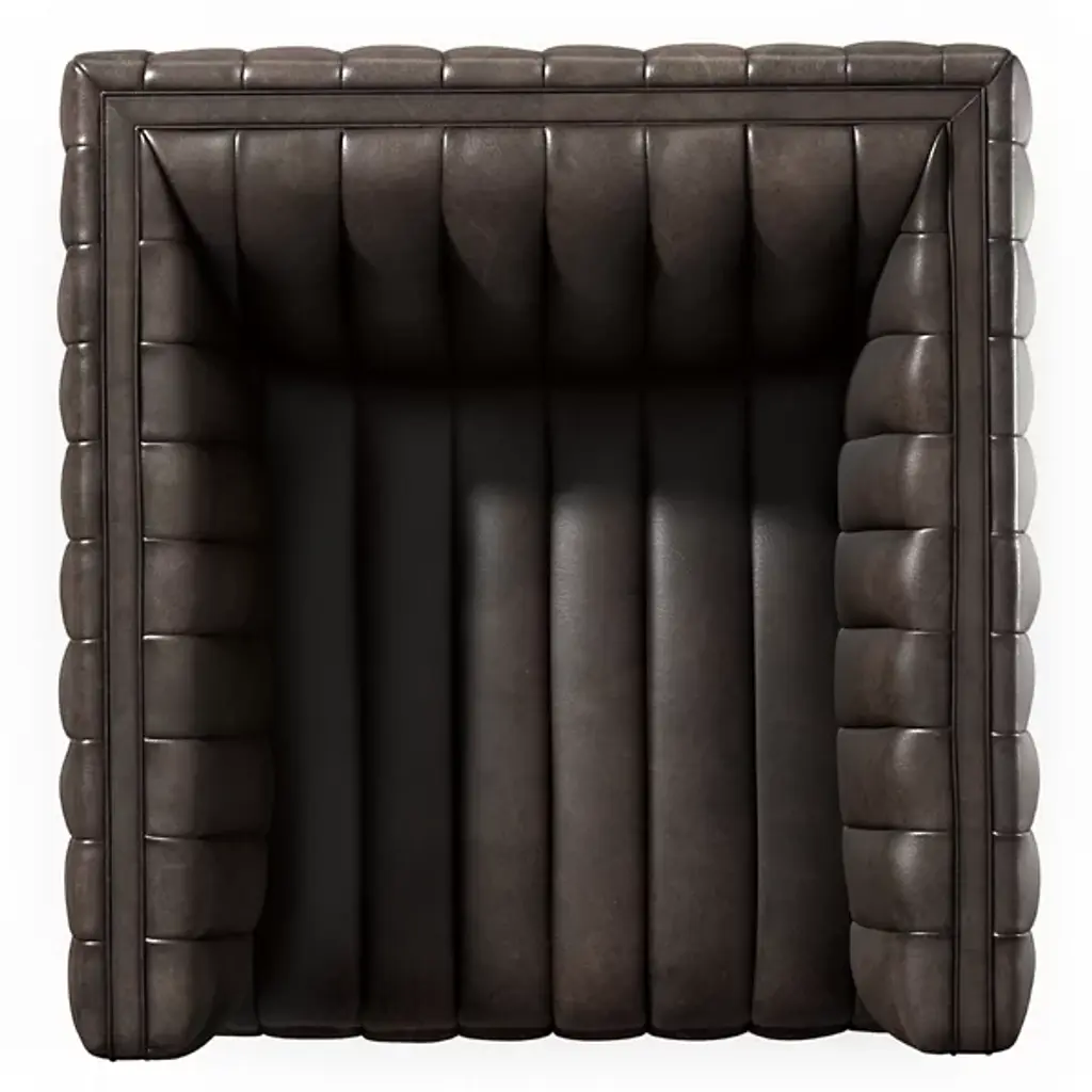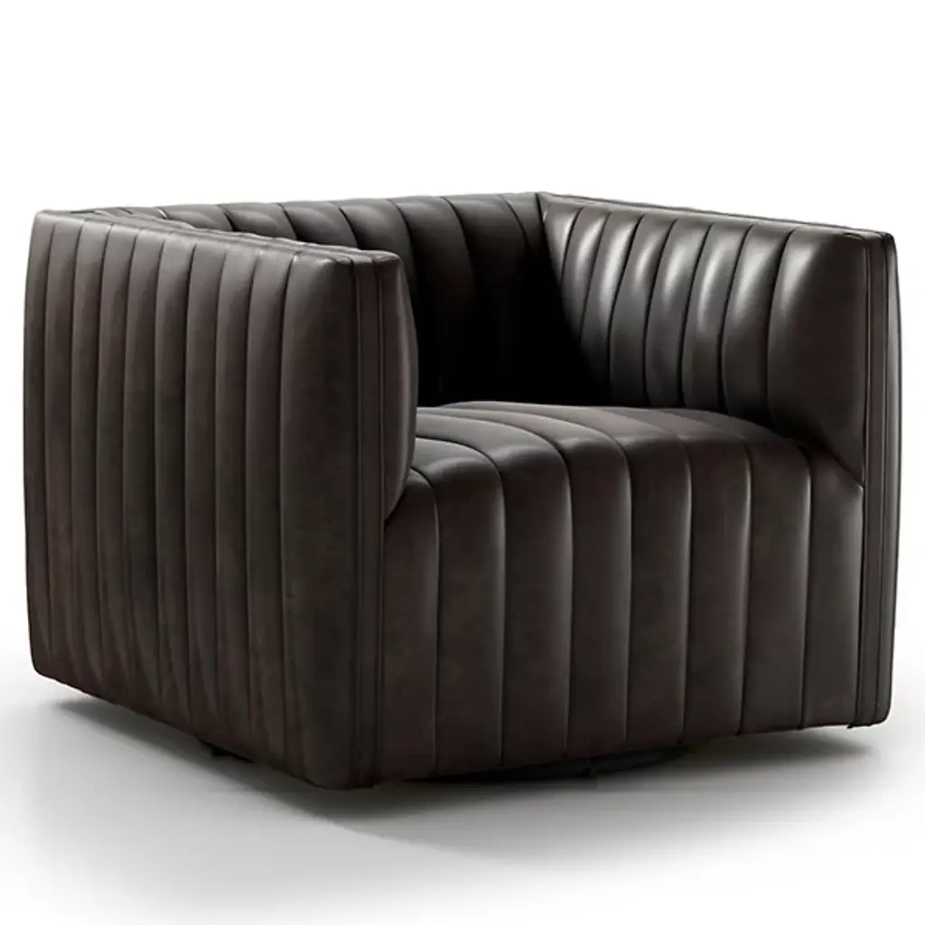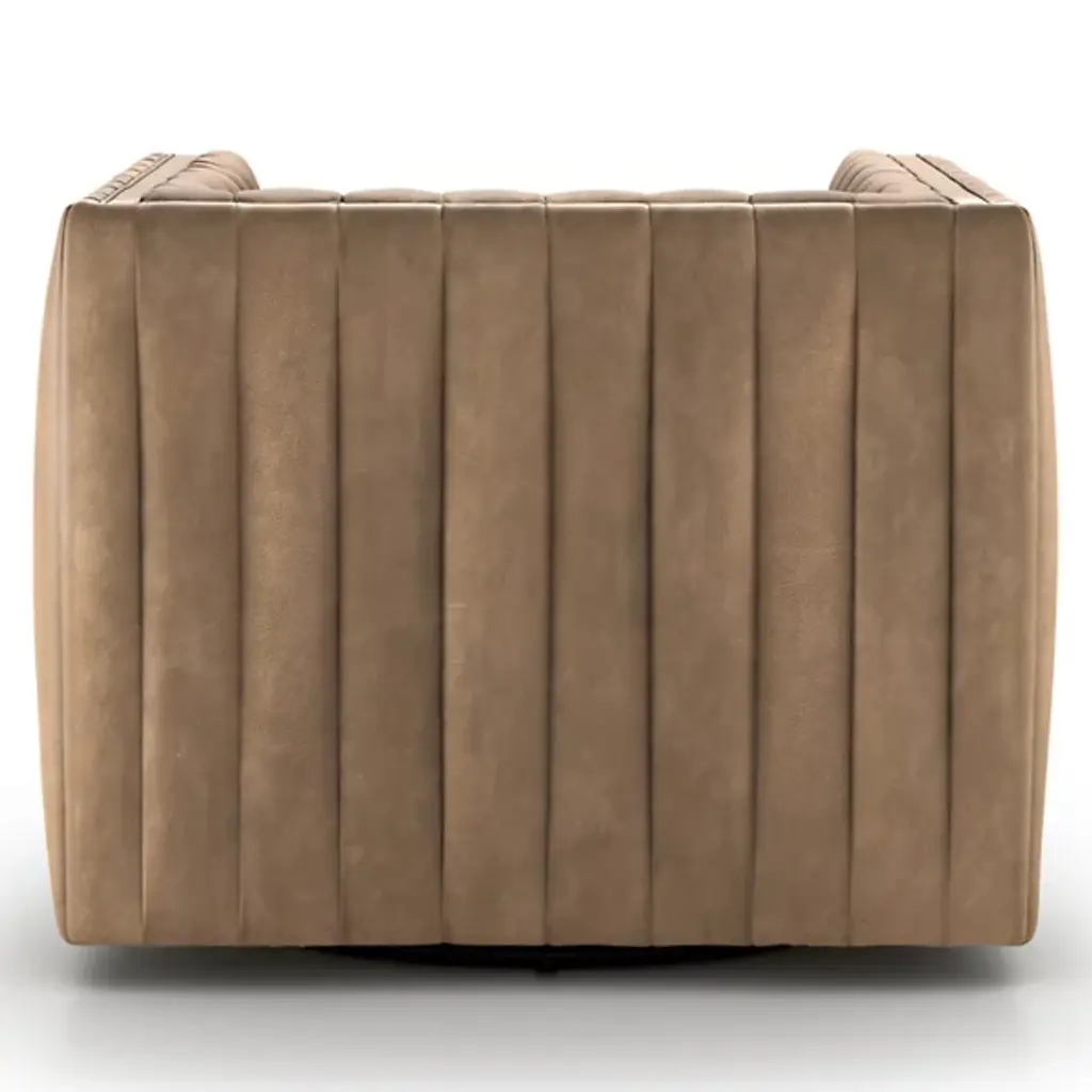 The Augustine Leather Swivel Chair from Four Hands embodies refined comfort. With its linear design and compact shape, this chair is a contemporary piece that effortlessly elevates your living space. The ribbed aesthetic adds sophistication. Augustine is upholstered in top-grain leather, providing luxury and durability. The polyurethane foam and fiber fill form a comfortable and supportive seat. This chair boasts swivel capabilities so you can position yourself freely while being supported by a poplar plywood frame.