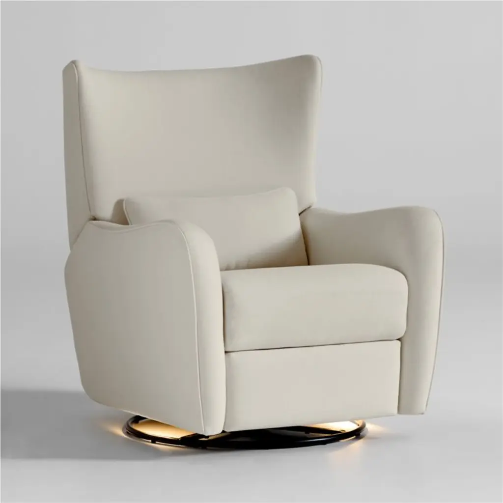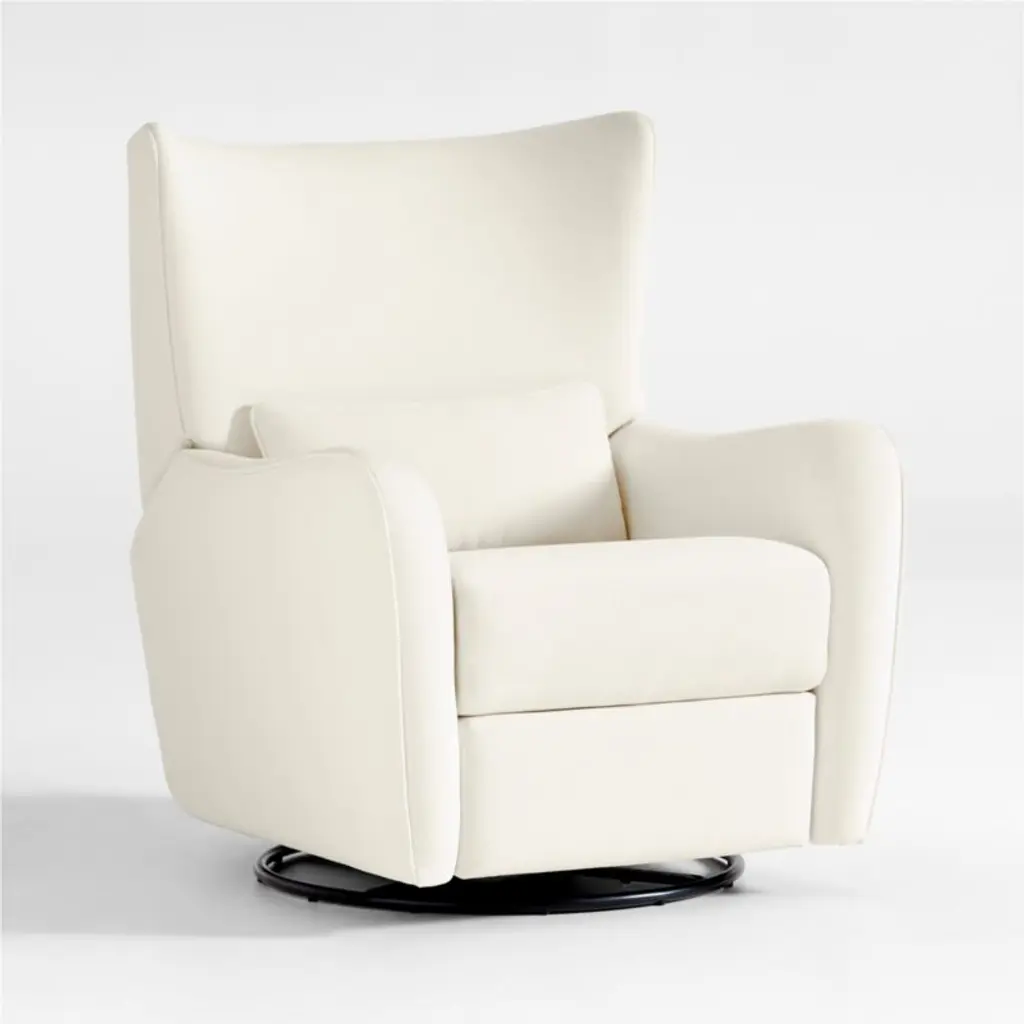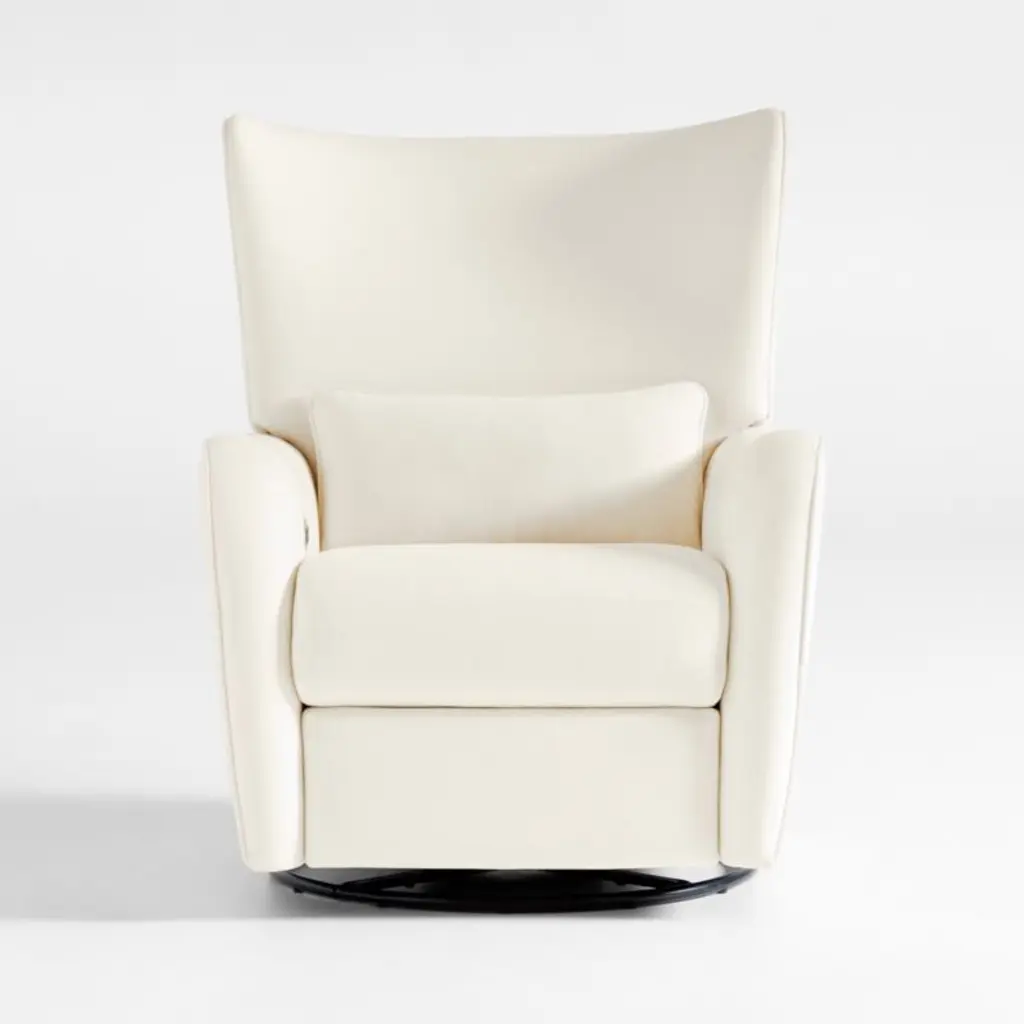 Take a classic wingback design, add in some smart modern technology, and you have one game-changing nursery chair. Our Aurora Power Recliner features a charging port tucked in the armrest for keeping devices at your fingertips, as well as a night-light in the base for soft illumination. The curved back keeps you ultra-comfortable during long nightsnot to mention the smooth swivel, recline and gliding motion. And its streamlined design and durable, cream-hued upholstery works in everything from traditional to contemporary spaces.