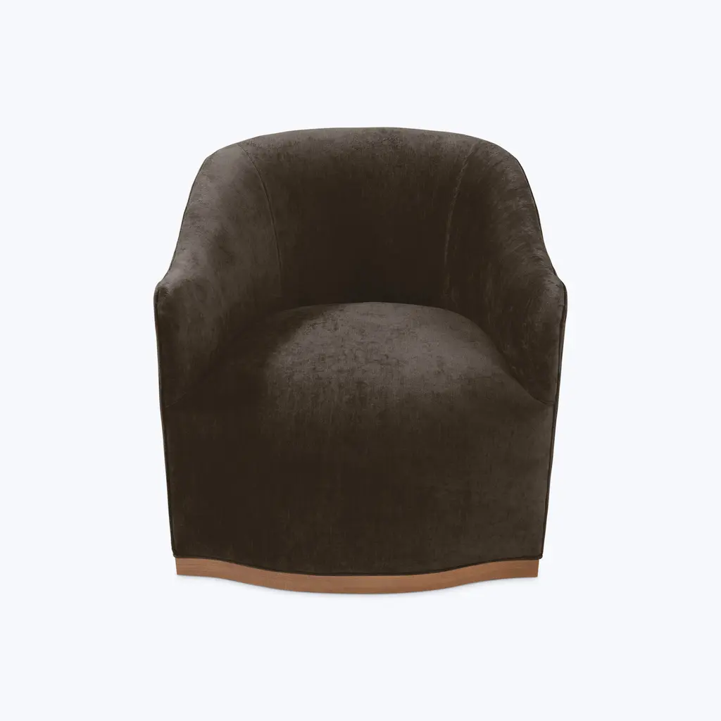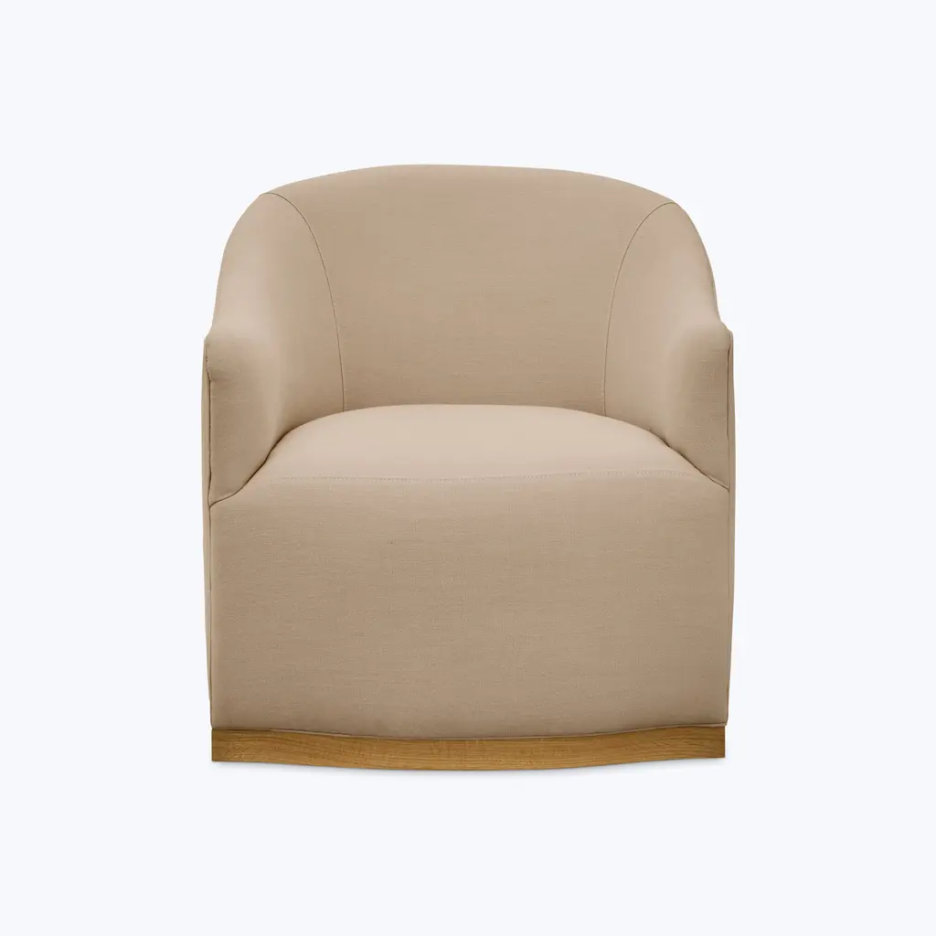 The Ava Wood Plinth Swivel Chair by Cisco Home brings sculptural elegance and quiet luxury into perfect balance. Refined, inviting, and beautifully proportioned, Ava is designed for those who appreciate seating that feels as artful as it is comfortable. Its soft curves and tailored tight seat create a silhouette that feels effortless from every angle, making it an ideal piece for open concept living rooms, reading corners, and modern lounge spaces. Handcrafted in the USA, the Ava Chair is built on a solid FSC certified wood frame, reflecting Cisco Home’s commitment to responsible materials and enduring craftsmanship. The chair rests on a dramatic wood plinth swivel base, a defining feature that grounds the design while giving it a subtle floating effect. This sculptural foundation adds depth and dimension, transforming Ava from a simple accent chair into a room-anchoring statement. The smooth, seamless swivel offers fluid movement that enhances conversation and flow within the room, making Ava as functional as it is beautiful. As the New York home of Cisco Home, abc carpet and home offers a curated palette of materials, tones, and textures that elevate Ava’s refined presence. Whether styled in warm neutrals, rich earthy shades, or soft coastal hues, the Ava Wood Plinth Swivel Chair brings warmth, sophistication, and quiet confidence to any room. A timeless expression of design and comfort, Ava is an heirloom-quality chair meant to be lived with, cherished, and admired for years to come.