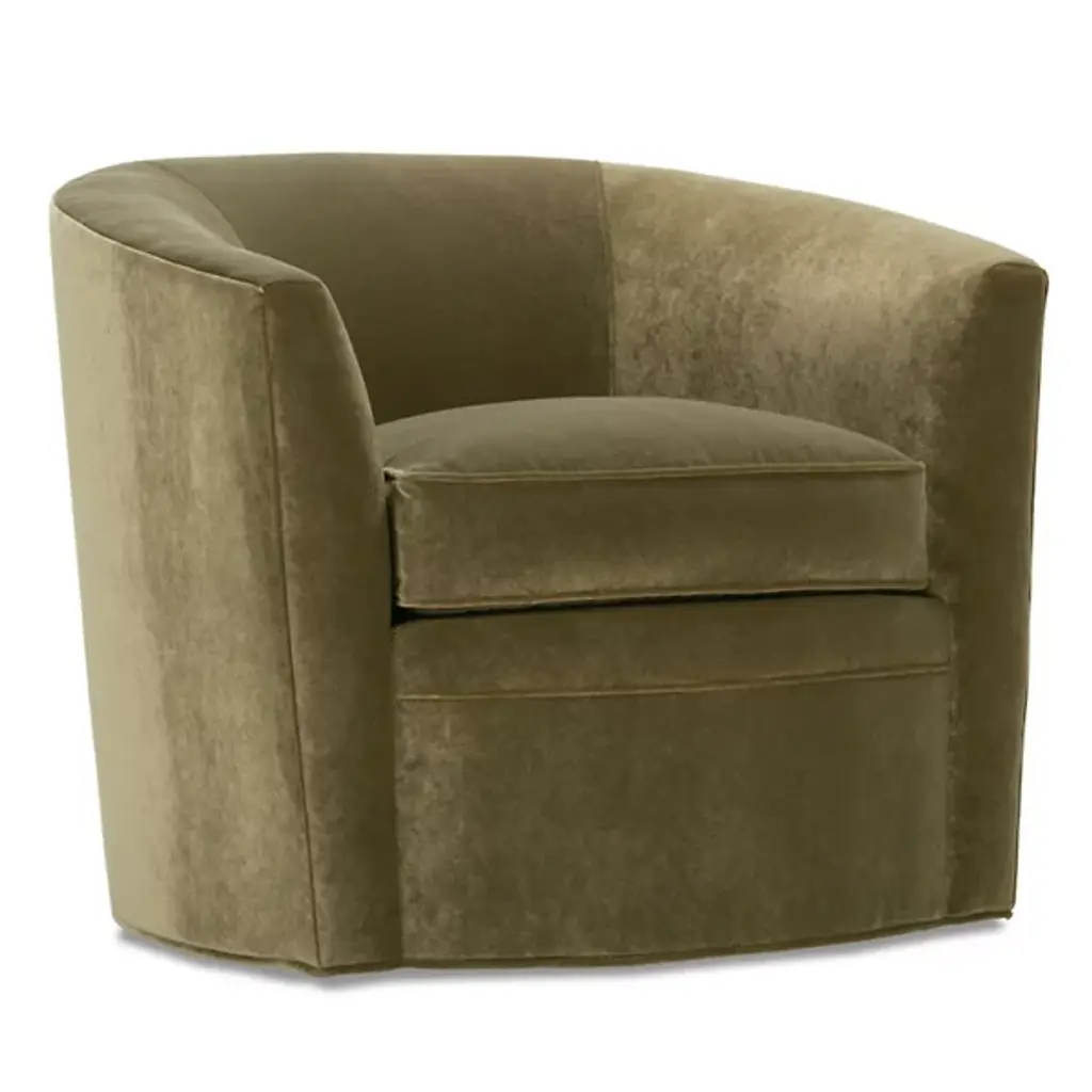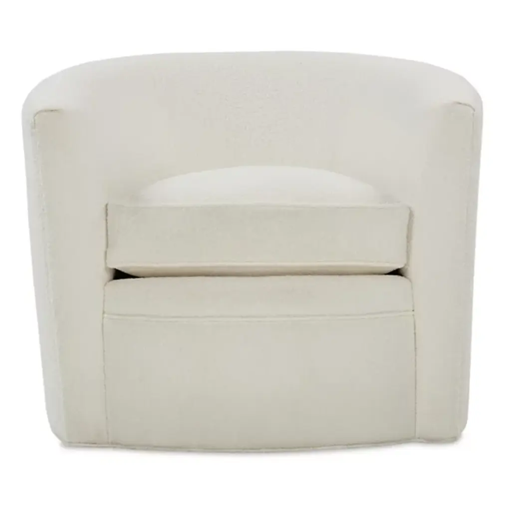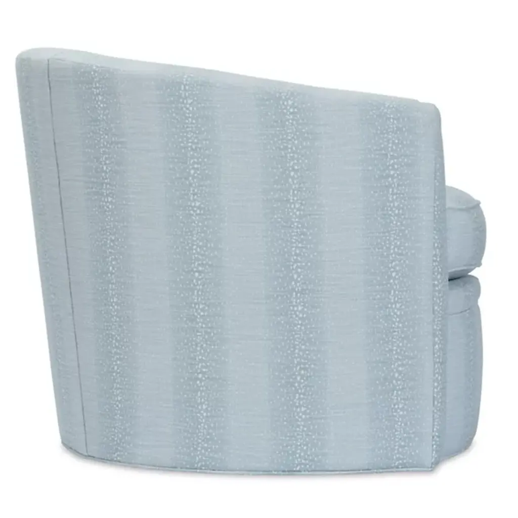 The Baldwin Swivel Armchair from Rowe Furniture utilizes specialized high-resiliency foam technology for lasting comfort. Its polyurethane core delivers proper support and bounce-back, wrapped in soft polyester fiber for extra cushioning. Free of PBDEs and flame retardants, this chair reflects environmental responsibility. Its smooth 360-degree rotation mechanism responds to natural movement. The polyester upholstery stands up to regular use while maintaining its appeal, making this armchair a useful choice for any room.