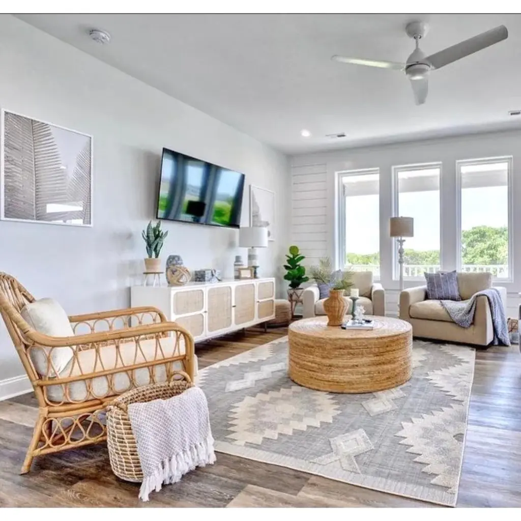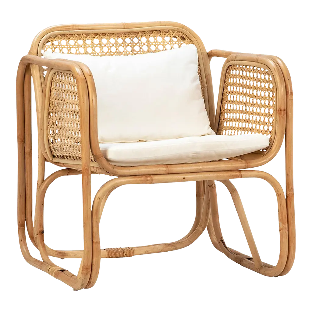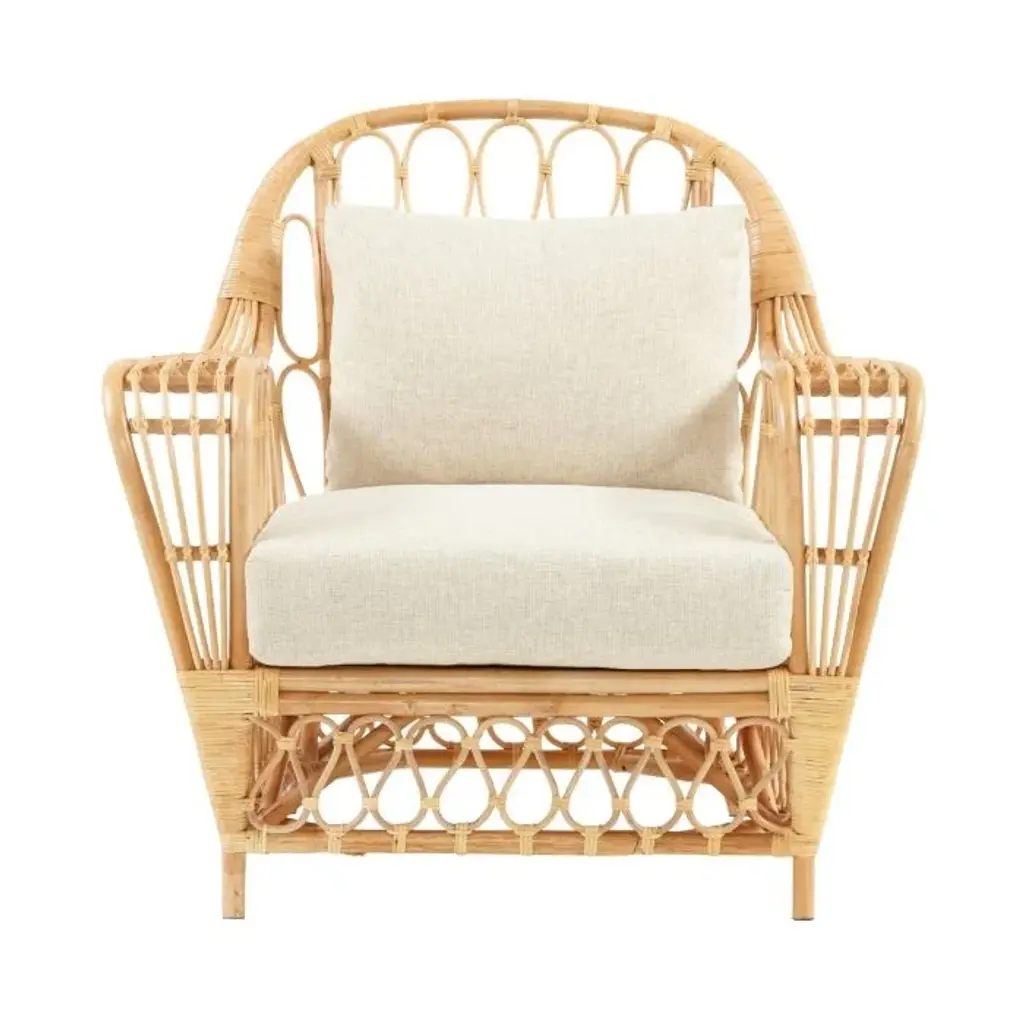 So welcoming ... This natural rattan club chair, with a plush cream colored seat and back cushion, will update a space with a sophisticated relaxed vibe. What a fantastic choice in a contemporary setting.