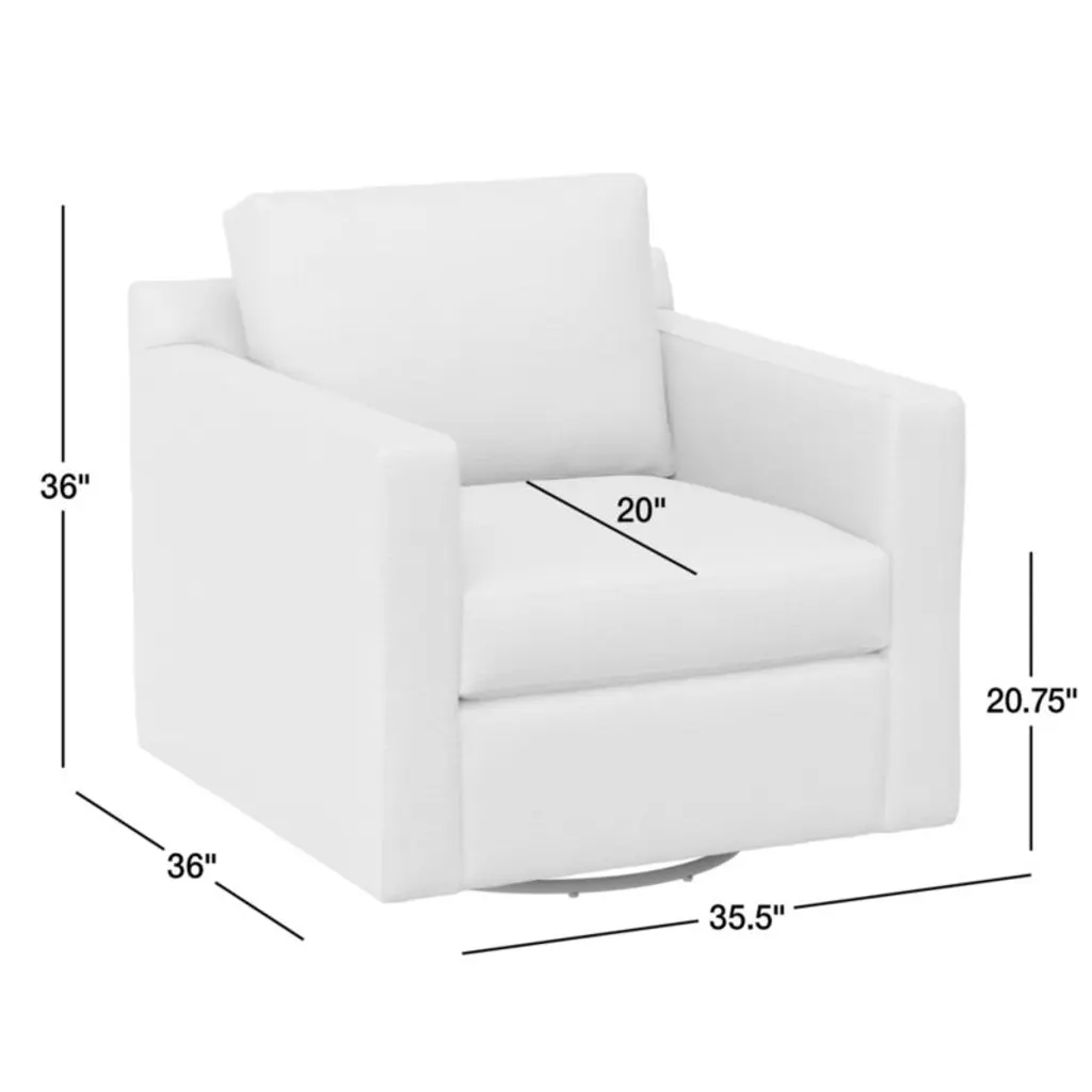 Barrett makes leather seating comfortable, casual and modern. Like fine leather apparel, the full-grain leather feels buttery to the touch and tailors the chair's clean lines with a graceful drape. The swivel chair sits upright and comfortable and is styled with track arms, topstitching and recessed legs that float its stylish silhouette. The swivel base turns 360 degrees for a full view of the living room or den.