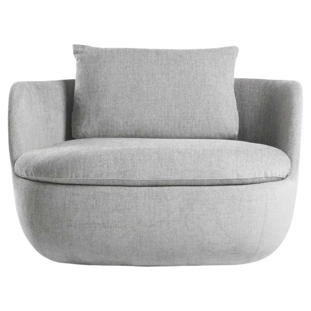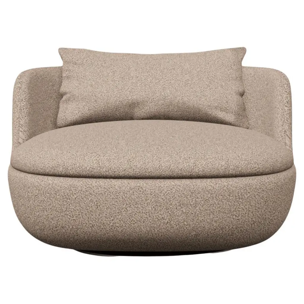 Presented by Moooi and designed in 2015, the Bart Upholstered Armchair was made in the Netherlands. This piece features a rounded silhouette that adds a softness to the lines of the space it dwells. Framed in wood and upholstered beautifully, it also features an optional swivel foot that allows for circular motion, making this armchair quite versatile in placement possibilities and movement flow. Display as a solo piece as an accent chair or in pairs to create a comfortable seating area for two.