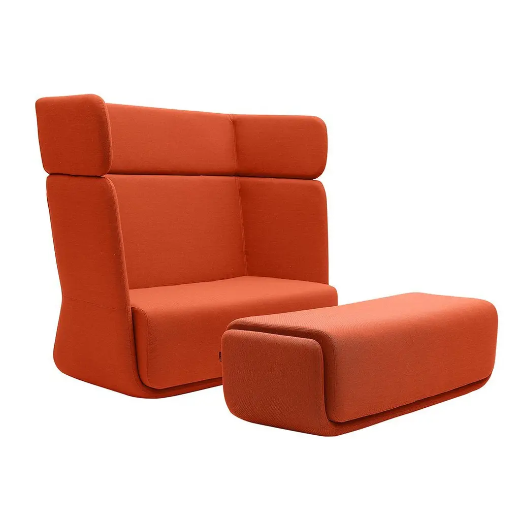 COLOURFUL BEACH BASKETS. Inspired by the functional beach baskets, BASKET is designed as an integrated modular system with two different back heights, which allows you to co-create and design your seating just as you like it. The intelligent sofa is a great setting for an intimate and cosy time alone or with friends, family or colleagues. The BASKET armchair comes with a swivel or fixed base. The BASKET poufs can be used as a footrest or a side table.