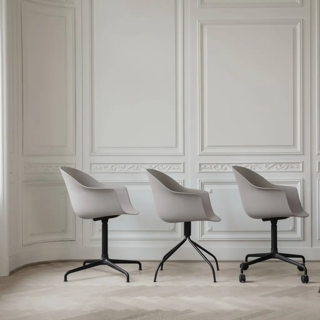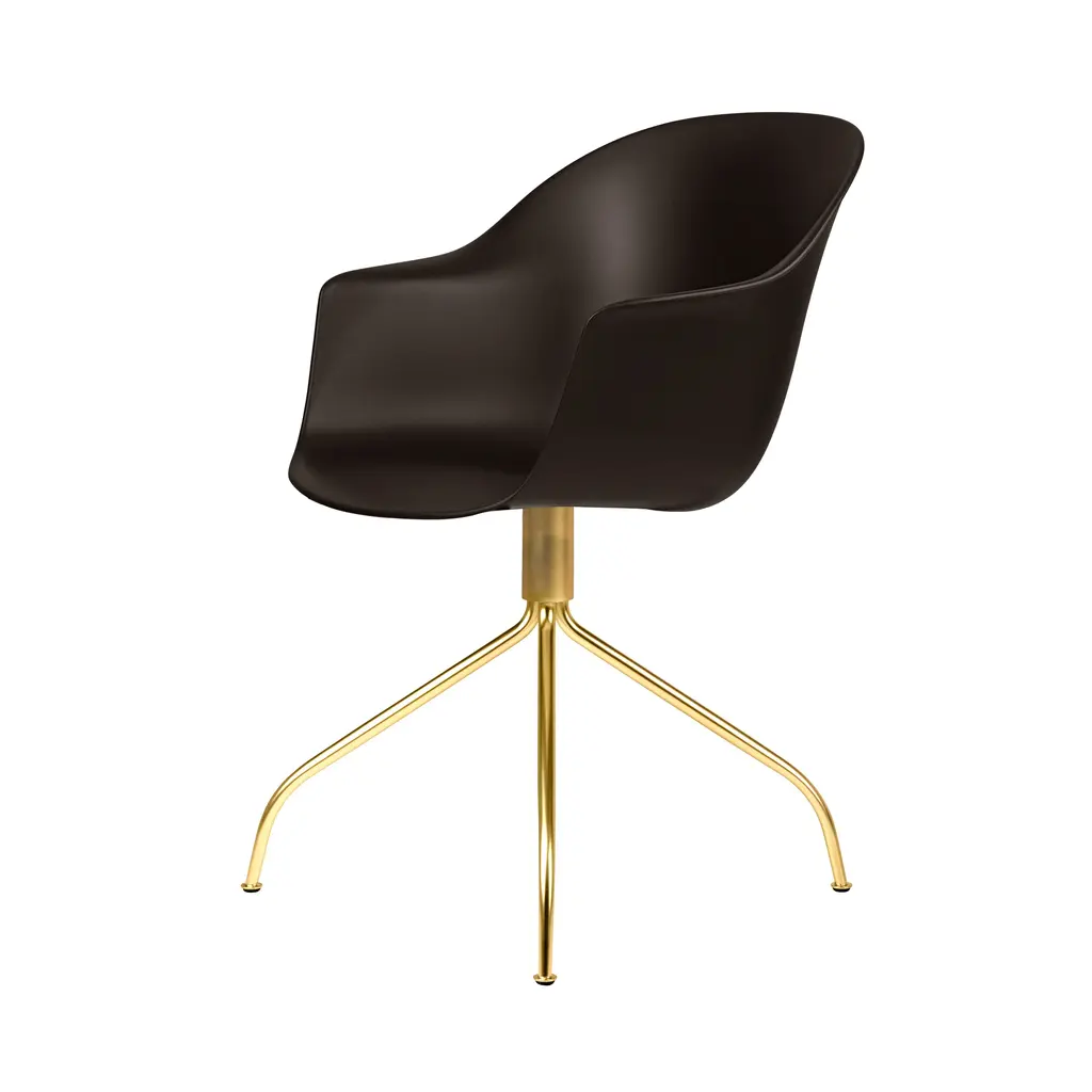 For added convenience around the conference table or for pivoting at a desk, Gubi's meeting chair by GamFratesi offers a swivel-action model. Bat's demonstrable comfort stems from its molded ergonomic contours complete with armrests in the designers' thoughtful update on the classic Danish shell chair. With a choice of 7 select hues, the seat has an appealing matte texture and soft touch. The weight-distributing 4-star metal base with swivel function is available with either felt or plastic guides and comes in matte black or semi-matte brass finish.