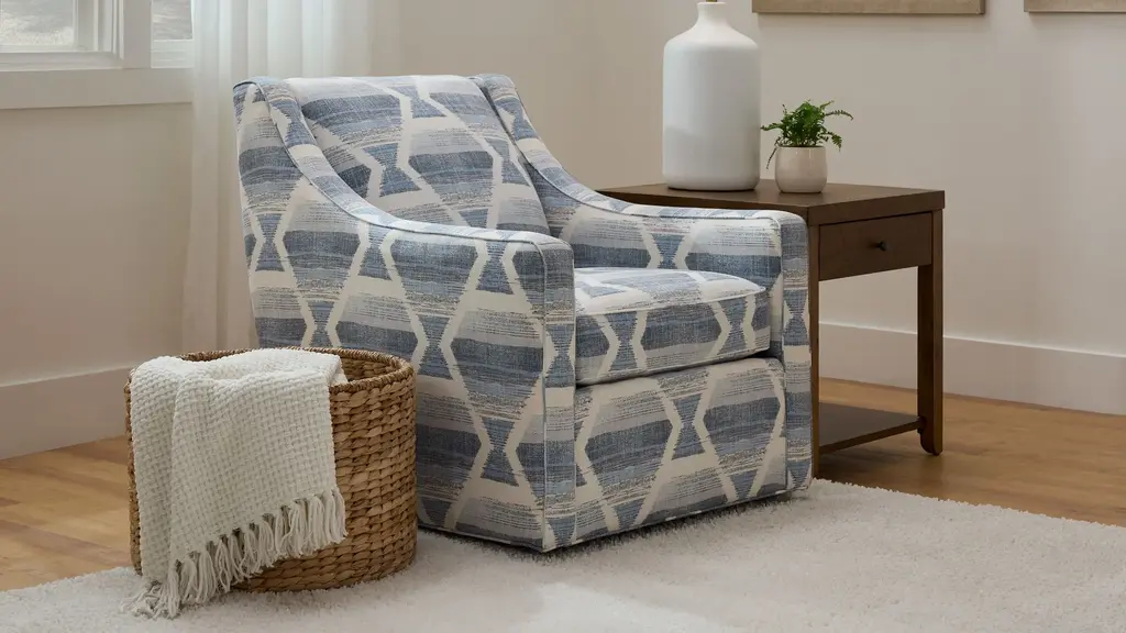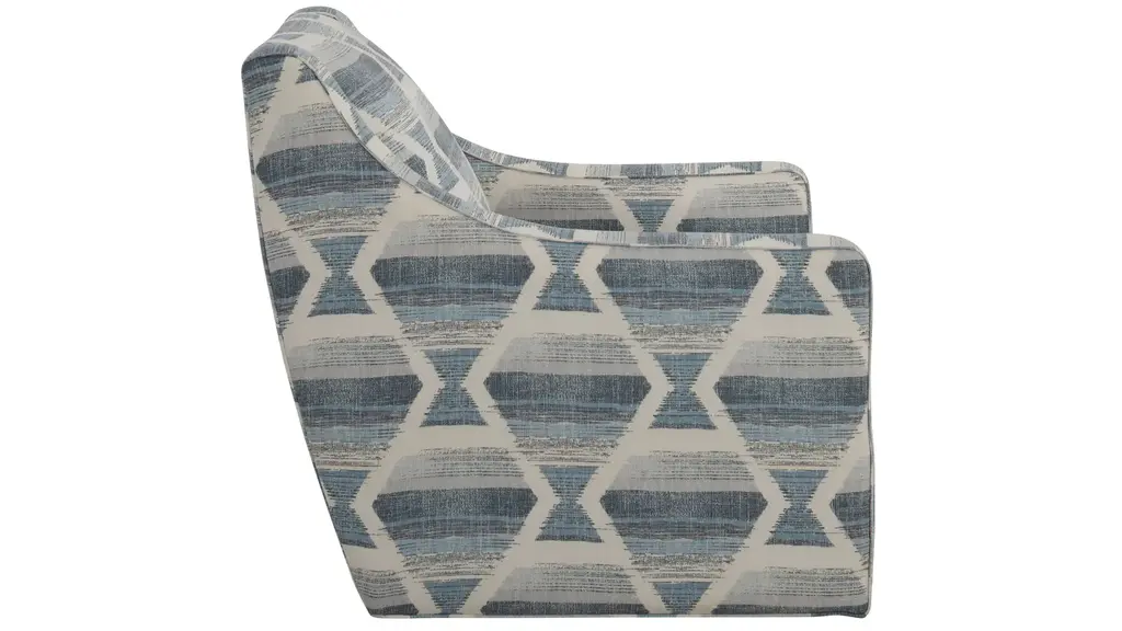 The cool blue and off-white color palette of the Bayside accent chair brings sea-inspired serenity to your casual contemporary living space. A tight back and sloped arms with an easygoing swivel function make it a breeze to relax in this chair alone, or amid gatherings.