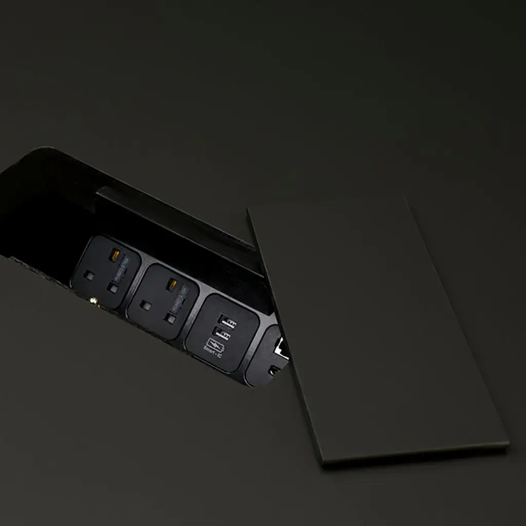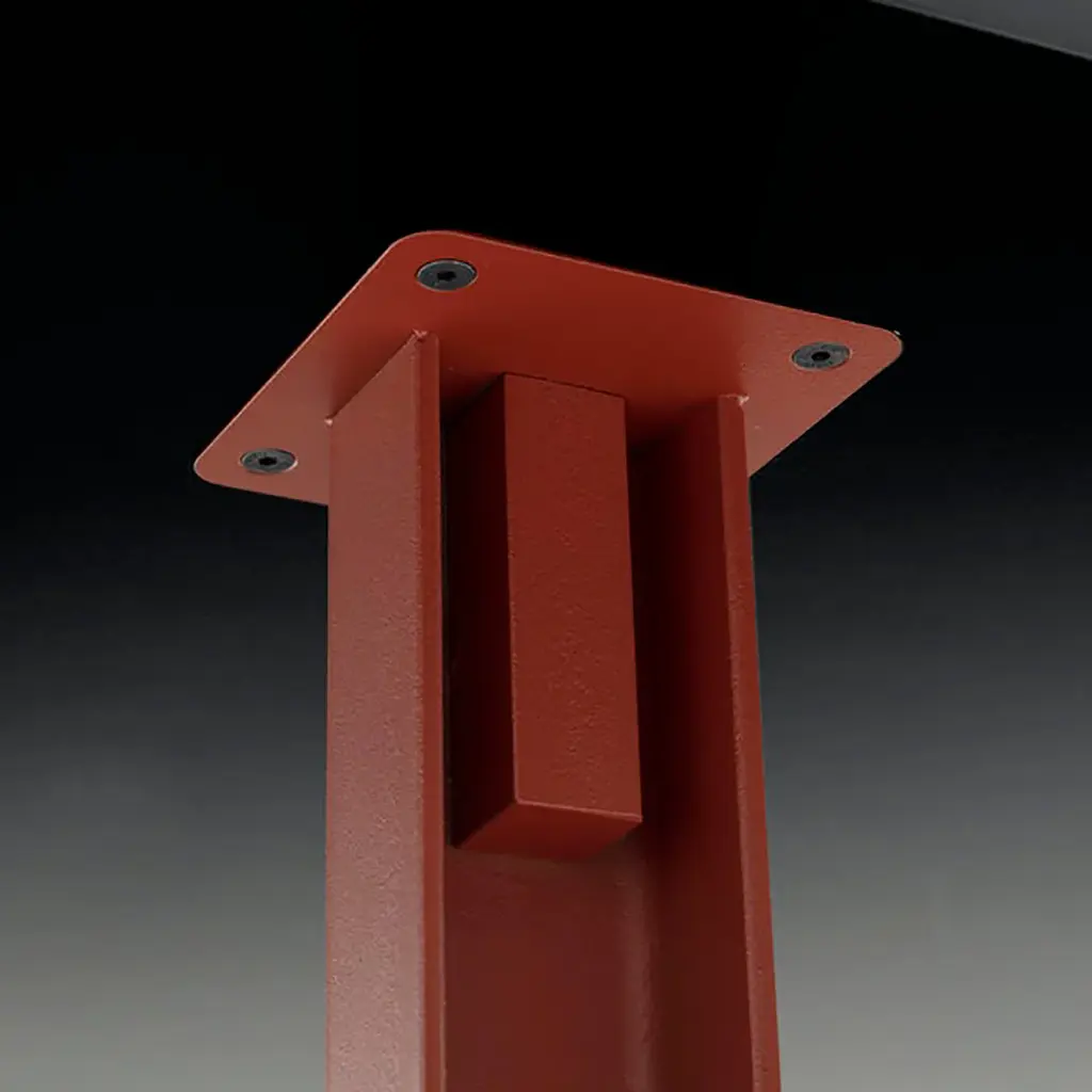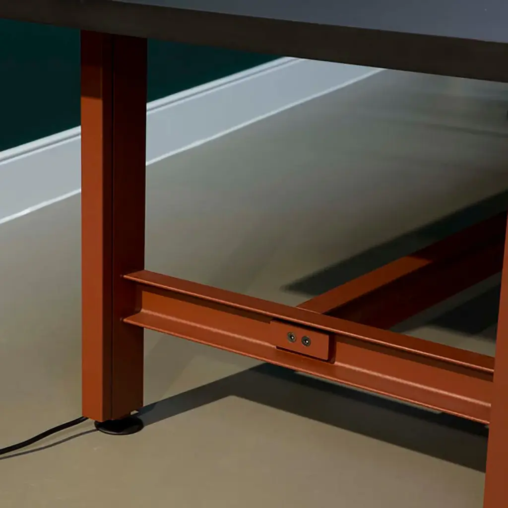 “The working environment is no longer about meeting rooms, task chairs and desk systems,” says Established & Sons director Sebastian Wrong. In turn, designer Konstantin Grcic conceives his multitasking Beam Table, equally at home in an artisan workshop, a gallery, or a live-work space. Based on a durable construction icon, rolled steel I beams form the structure, coated in a fine-textured powder coat in either black or red oxide and sitting on adjustable round feet that help protect the floor beneath. (Optional lockable swivel castors are available.) The expansive solid-lipped tabletops are offered in matte oak veneer, high-pressure laminate in black and in black Fenix, a heat- and scratch-resistant, premium surface material.