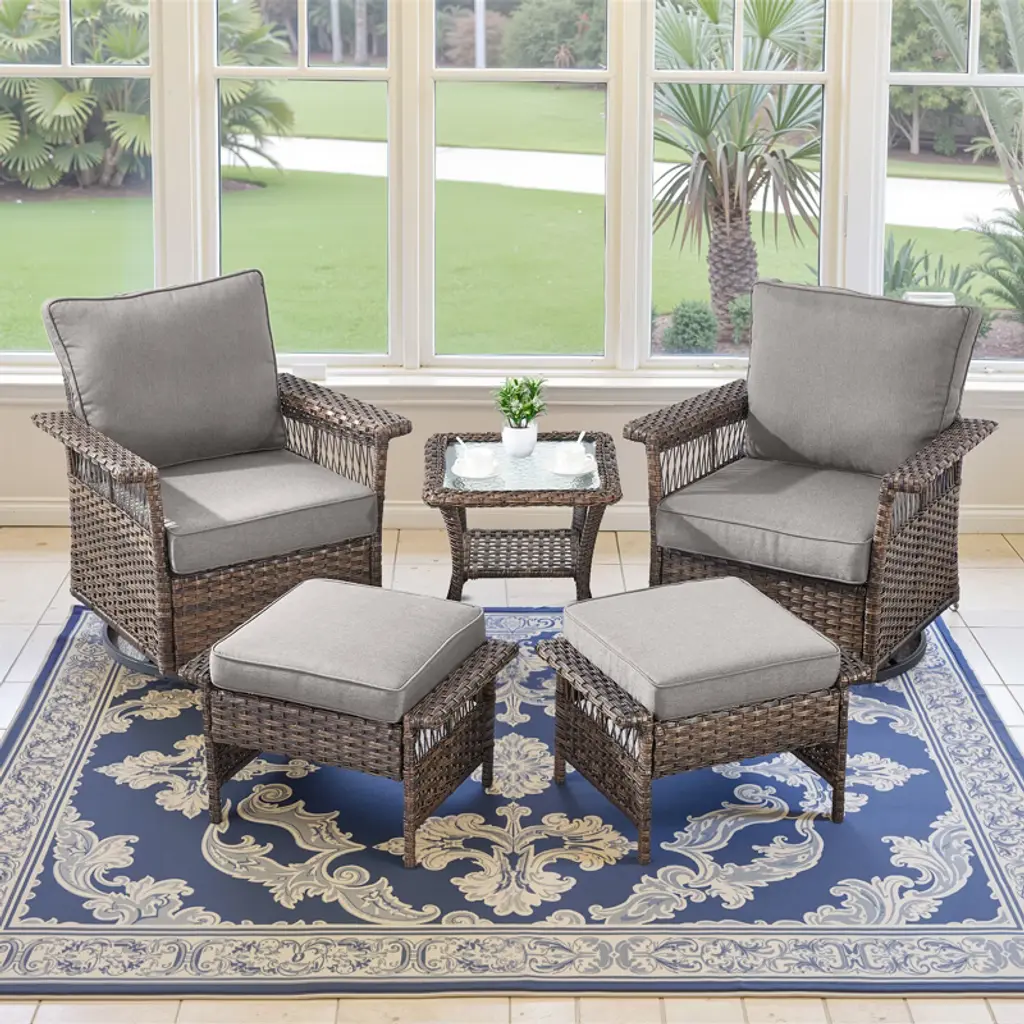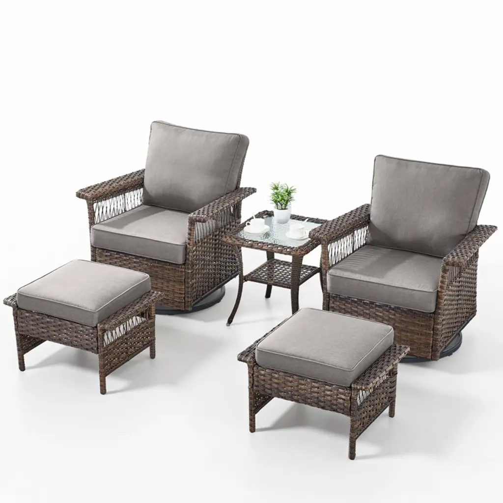 Belord 5 Pieces Patio Furniture Set, All Weather Brown Wicker Outdoor Conversation Set With Swivel Patio Chairs Set Of 2, Small Balcony Furniture Set
