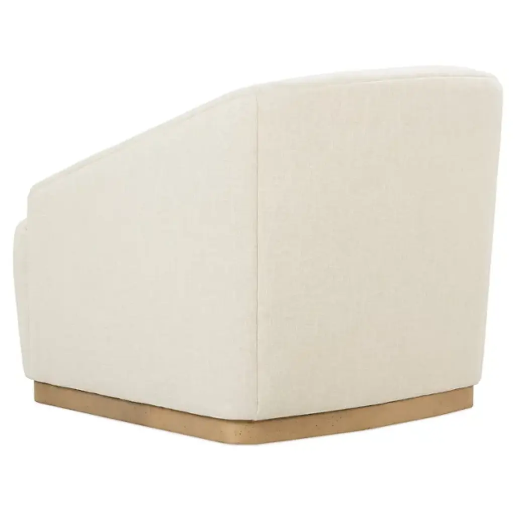 The Bernie Swivel Chair from Rowe Furniture offers the perfect blend of style and function. This chair is crafted with a sturdy wooden frame and features a comfortable seat upholstered with poly-wrapped foam, ensuring lasting comfort. The swivel feature adds a touch of versatility to your living space. Whether reading, working, or simply unwinding, this chair offers a cozy and convenient seating solution. Elevate your home's decor with this stylish and functional swivel chair.