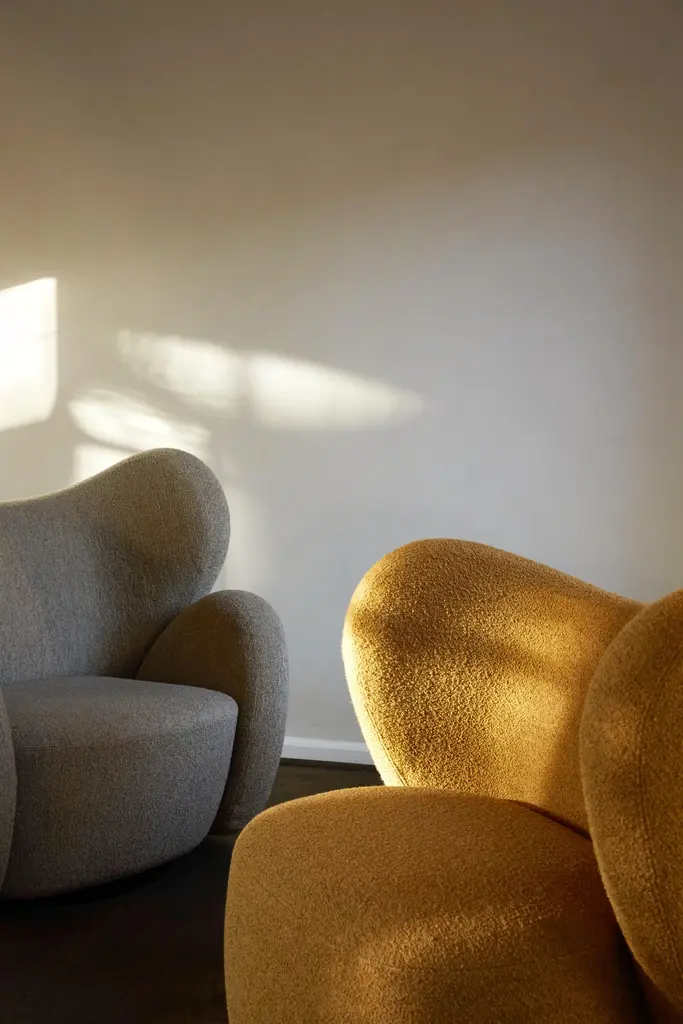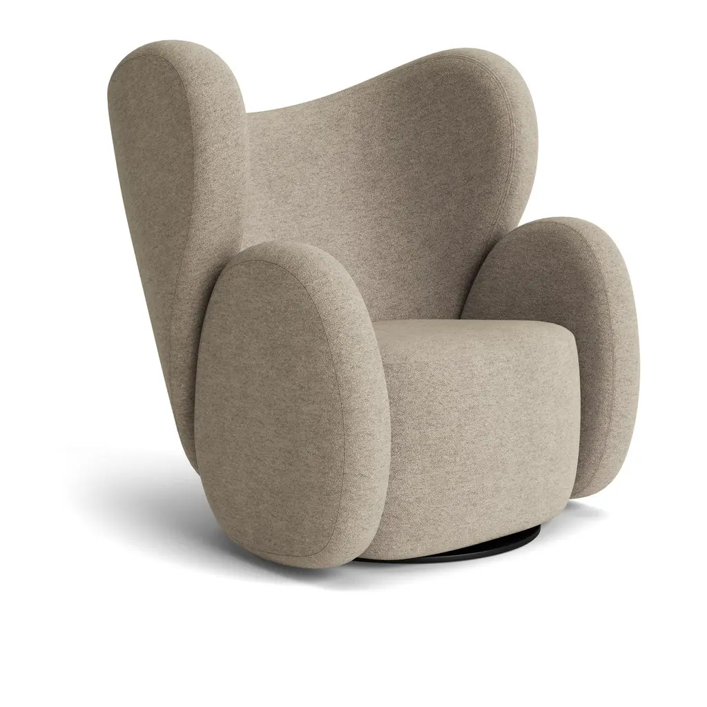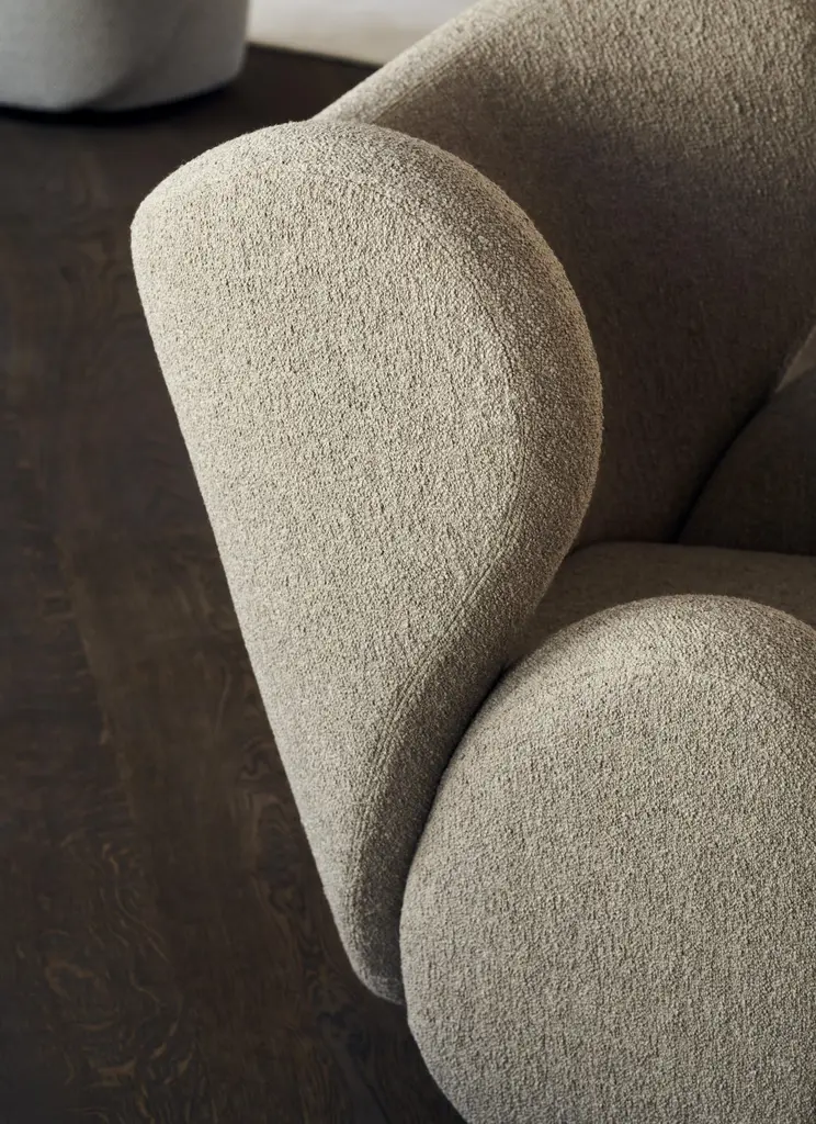 BIG BIG CHAIR ArmchairSigned by Kristian Sofus Hansen and Tommy Hyldahl for Norr11. Model shown on the picture:Fabric: Barnum Bouclé 03Made in ItalyAppropriately named, the Big Big Chair is the bigger version of the compact Little Big Chair. The voluminous shapes are divided into four playfully oversized objects, each designed to embrace ultimate comfort. Swivel base with an auto-return movement function made of iron. Inspired by classic Art Deco lounge chairs.Norr11NORR11 is a Danish design brand driven by a vision to bring new perspectives to modern interiors across furniture and lightings. Crafted with honest and natural materials the designs are built-to-last and with commitment to sustainability.NORR11 believe in creating pieces with personality, providing character and comfort to any space. Fusing Scandinavian design with Asian aesthetics NORR11’s design language combines the past and the present in a timeless design. The inspiration is found in the nature and raw natural materials which are evident in the collections.