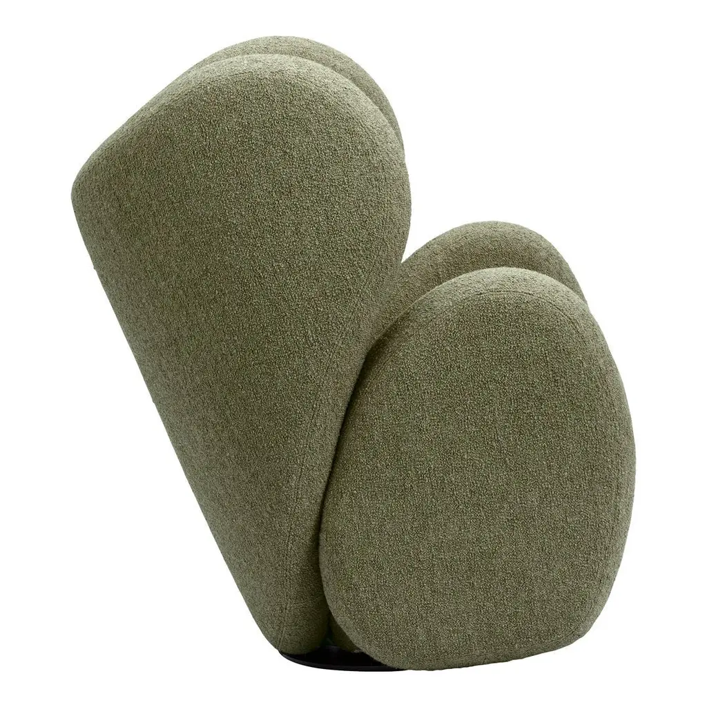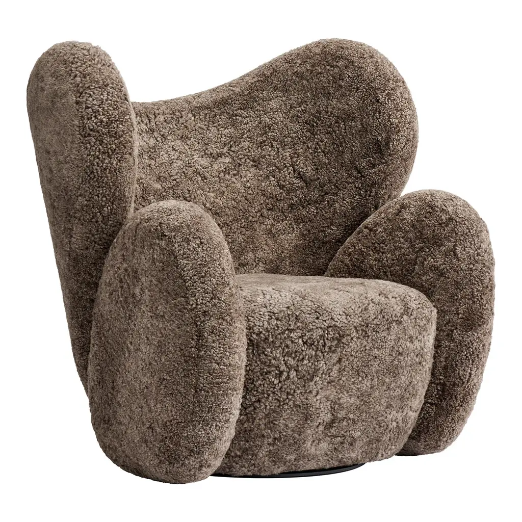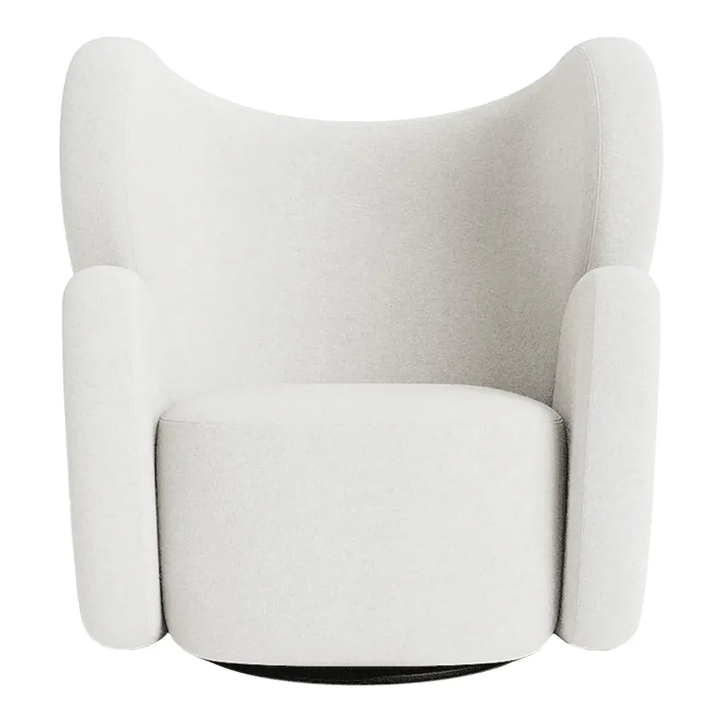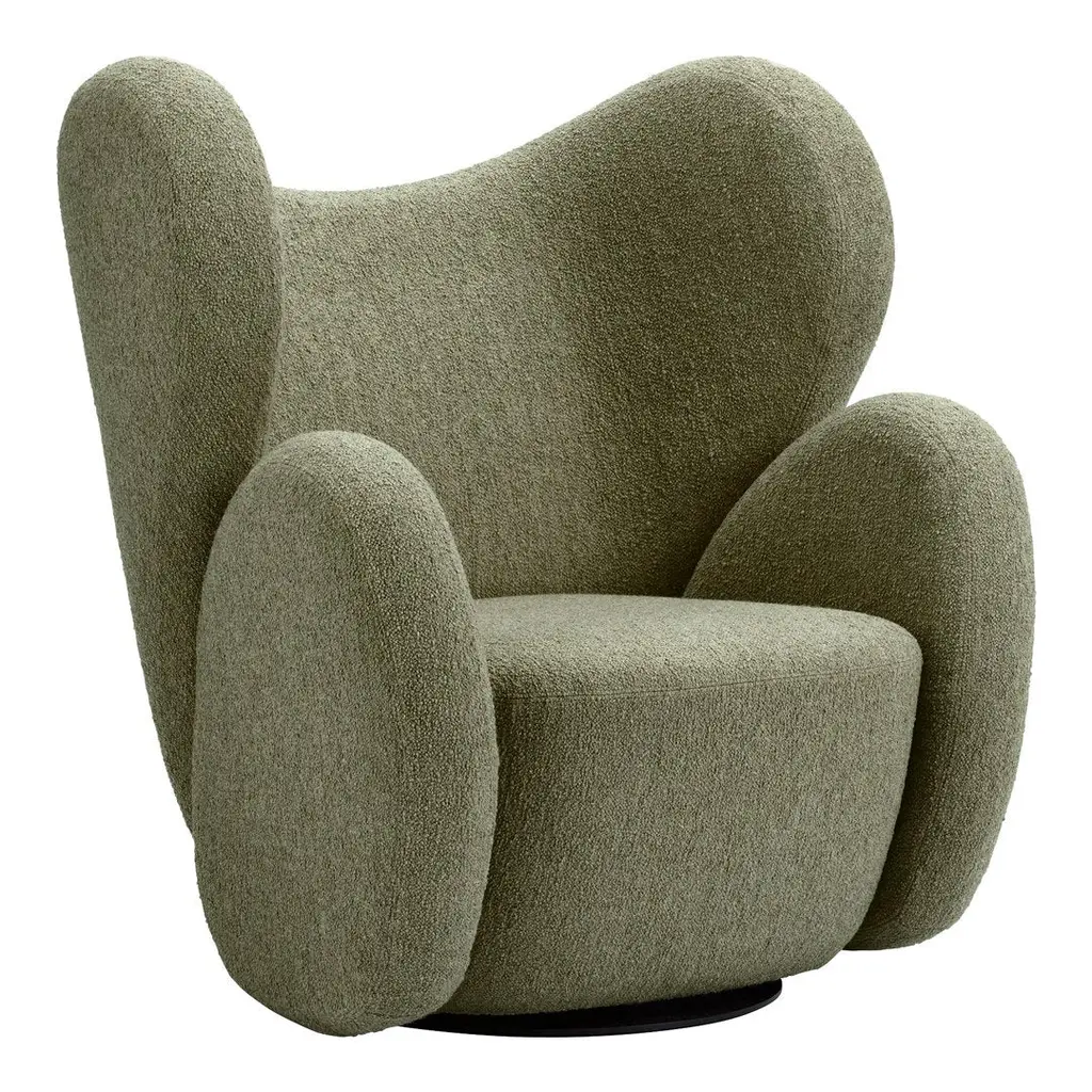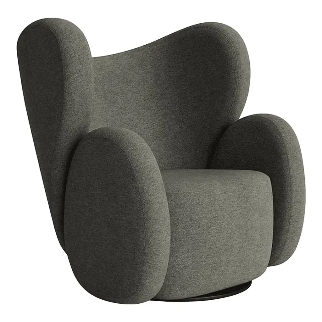With its simplified block-like structure, the Big Big Chair is a reinterpretation of a classic Art Deco lounge chairs The voluminous shapes are divided into four fully upholstered objects, each piece designed according to ergonomic needs, and put together in a new constellation. The chair comes on a swivel base and can be used in lounge areas and homes. The voluminous and organic shapes of the Big Big Chair provide comfort and a feeling of relaxation.