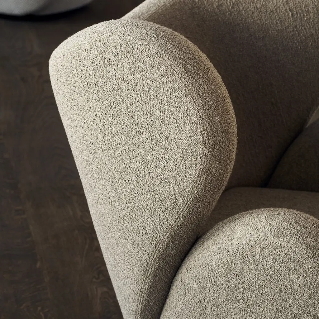 With its simplified block-like structure, the Big Big Chair is a reinterpretation of a classic Art Deco lounge chairs The voluminous shapes are divided into four fully upholstered objects, each piece designed according to ergonomic needs, and put together in a new constellation. The chair comes on a swivel base and can be used in lounge areas and homes. The voluminous and organic shapes of the Big Big Chair provide comfort and a feeling of relaxation.