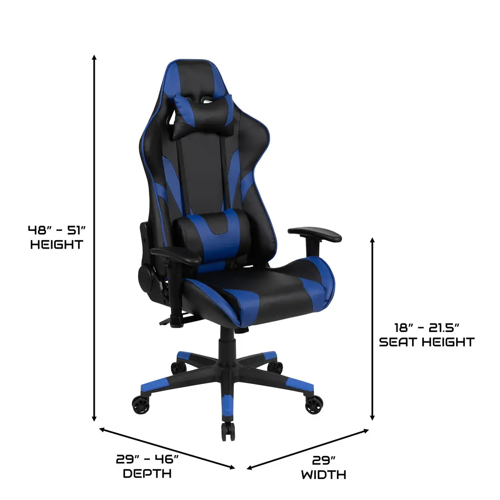 Blackarc Horizon 9Ine High Back Reclining Gaming Chair In Faux Leather - Height Adjustable Arms - Headrest & Lumbar Support Pillows