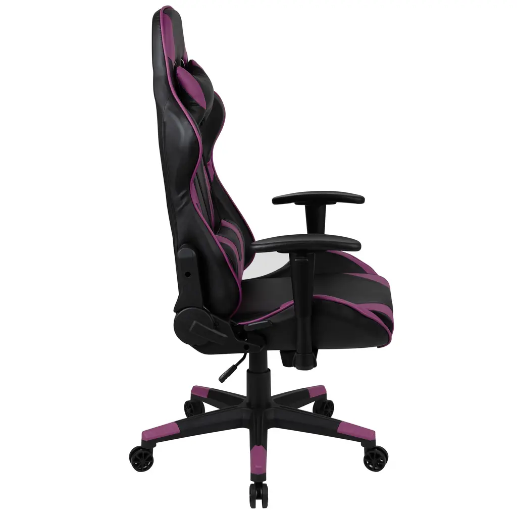 Loading Progress… Welcome to the new era of gaming, brought to you by the Horizon 9ine gaming chair. Juiced up with all the features, including adjustable/removable headrest and lumbar support pillows. The comfort continues with the high-back design dressed out in modern faux leather upholstery. 87° - 145° recline gives you welcomed respite during extended gaming sessions. Pneumatic seat height adjustment, 360° swivel rotation, tilt/tension adjustment knob and sporty dual wheel casters complete the inventory list.