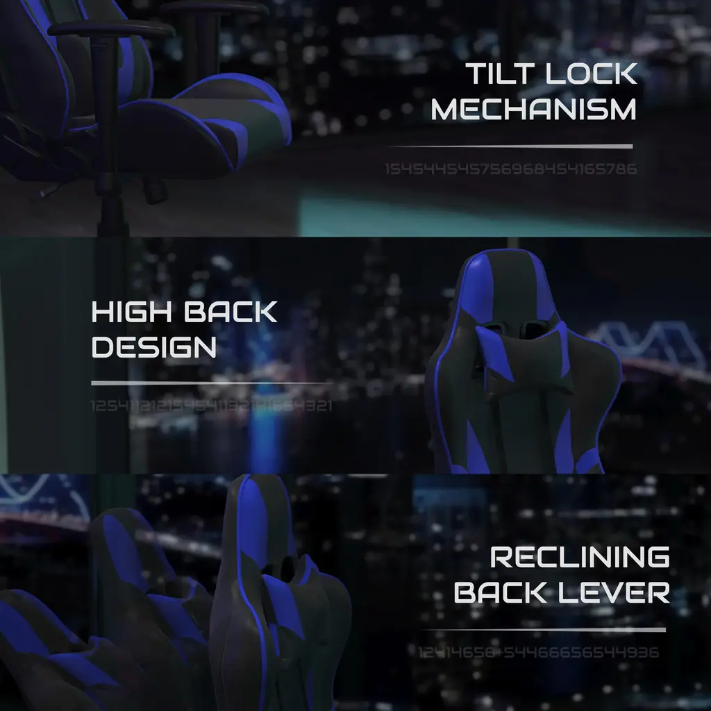 Blackarc Horizon 9Ine High Back Reclining Gaming Chair In Faux Leather - Height Adjustable Arms - Headrest & Lumbar Support Pillows