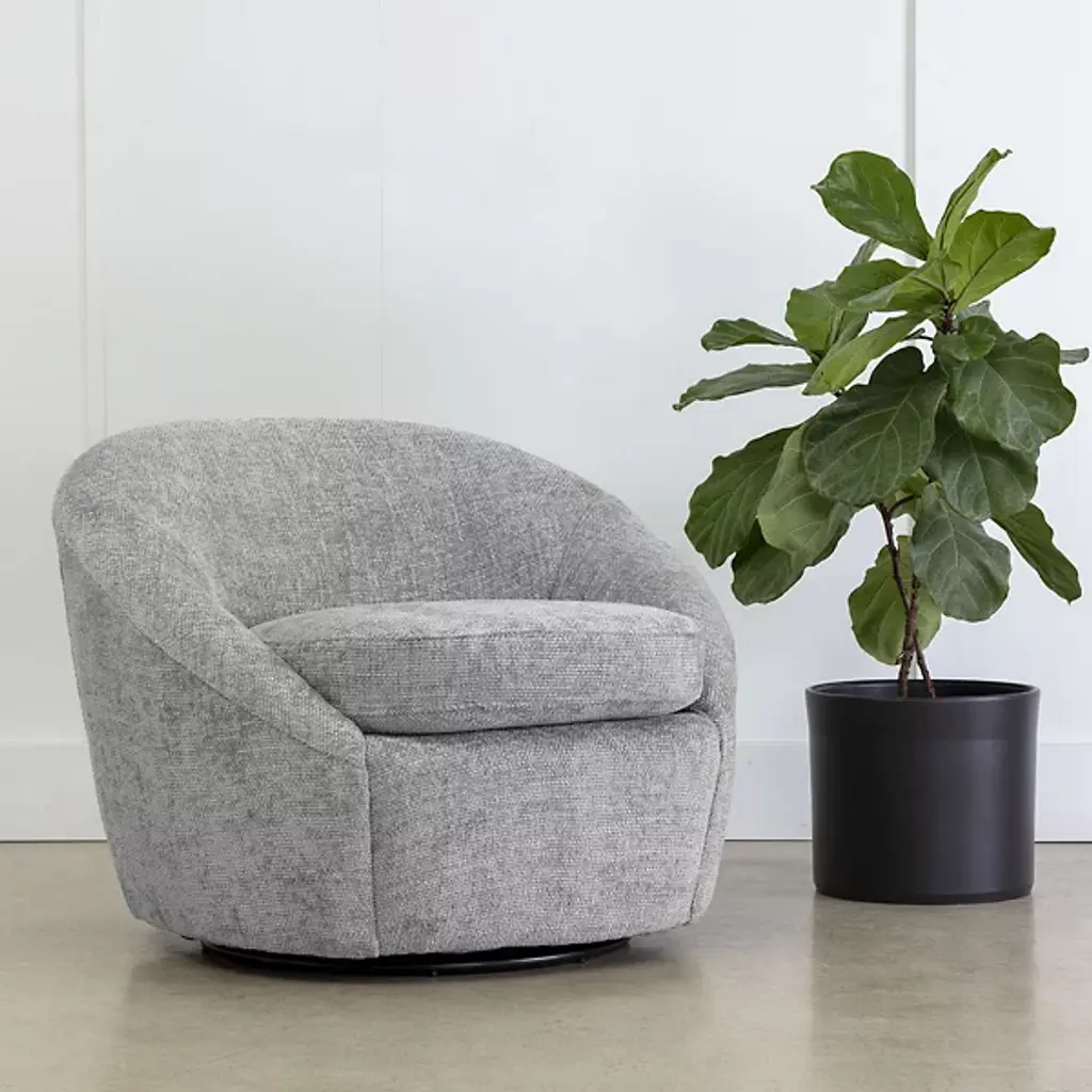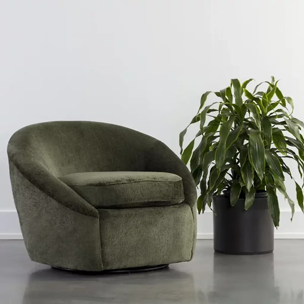 With its irresistibly curvy design, the Bliss Swivel Lounge Chair from Sunpan is a show-stopping accent piece that adds a touch of sophistication to any room. Upholstered in luxurious fabric, the chair offers both style and comfort, making it a perfect spot for relaxation. The sleek black powder-coated stainless steel base provides sturdy support while enhancing the chair's modern aesthetic. Whether in a living room, bedroom, or office, this swivel chair will make a bold statement, effortlessly blending form and function in any space.