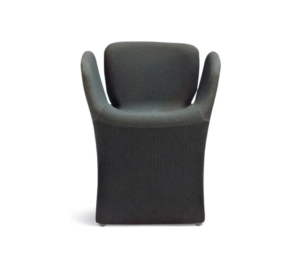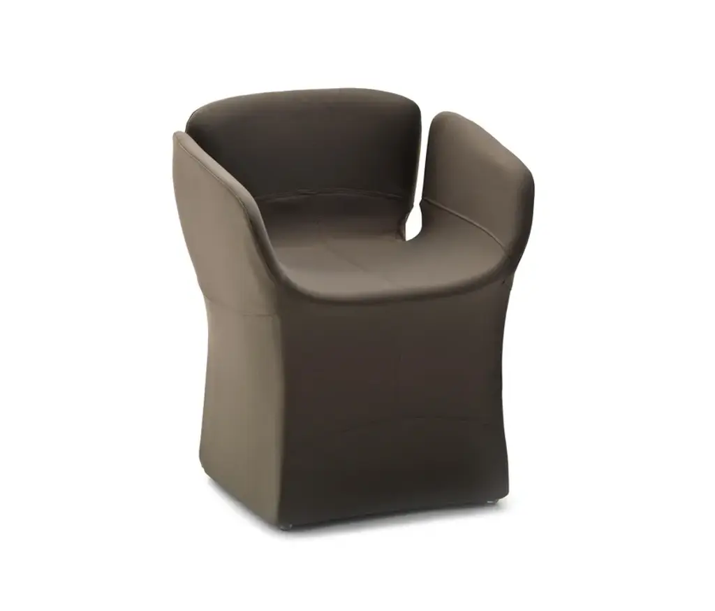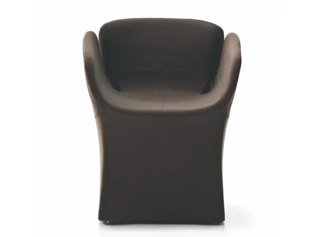 Bloomy small armchair has an injected flame-retardant foam over internal steel frame with elastic webbing; on black polypropylene glides. Swivel base is steel with black Ral 9005 powder coat finish (code 0V6).Available in fabric or leather.Bloomy collection covers are removable.Bloomy evokes the vegetative beginnings of the flower. The bud has become a chair, the open flower a lounge chair and the armchair is the flower in full bloom. The BLOOMY system of armchairs is enriched with new components: two sofas with well-defined lines and with a back with a rounded line. Depending on the covering chosen, it takes on new, classic or contemporary connotations. To complete the range, there is a table that can be used in a variety of situations, either to accompany the sofa and armchairs, or standing happily on their own.