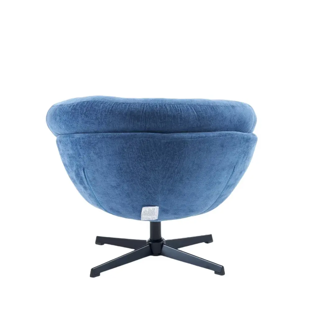 Blue 360°swivel Chenille Accent Chair,accent Chairs With Arms,accent Chair With Faux Leather And Black Metal Base Frame -Maison Boucle