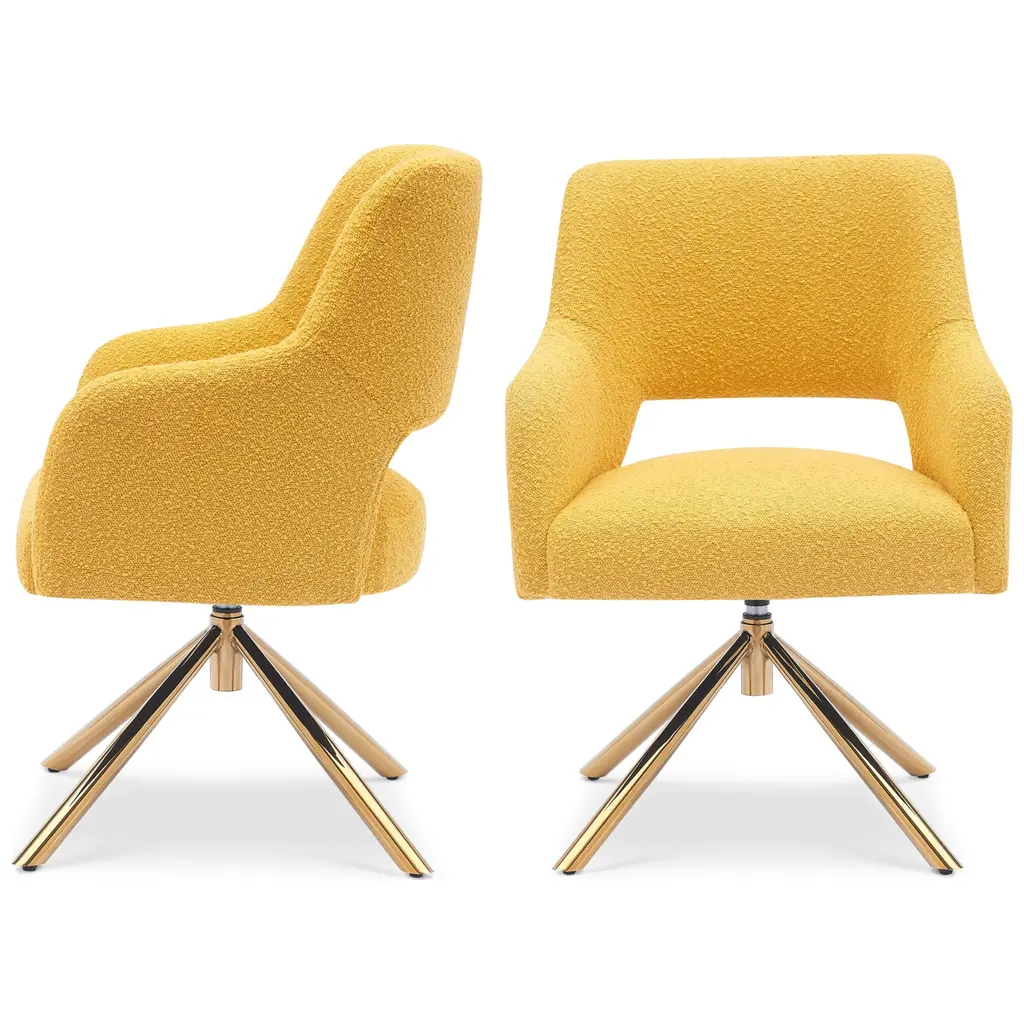 Boucle Polyester Upholstered Swivel Accent Chair - Stain Resistant (Set Of 2) - Mustard