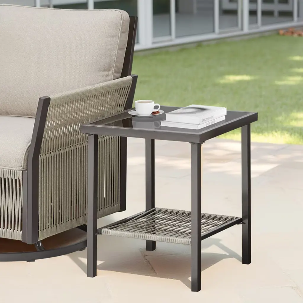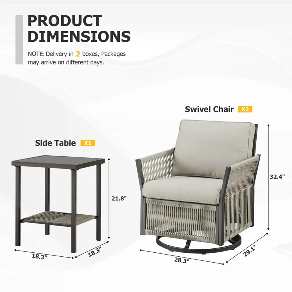 Create your own private outdoor retreat with this stylish 2-piece swivel chair set, complete with a matching coffee table. Ideal for your balcony, garden, or patio, this set features comfortable, ergonomic cushions and a durable rattan frame, allowing you and your loved one to enjoy relaxing conversations or peaceful moments together. Perfect for any outdoor setting, this set combines comfort and elegance for an unforgettable outdoor experience.