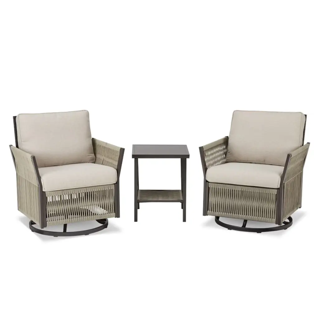 Buenhomino 2-piece Swivel Chair Set With Coffee Table – Modern Outdoor Resin Wicker Lounge For Balcony, Patio Or Garden Beige