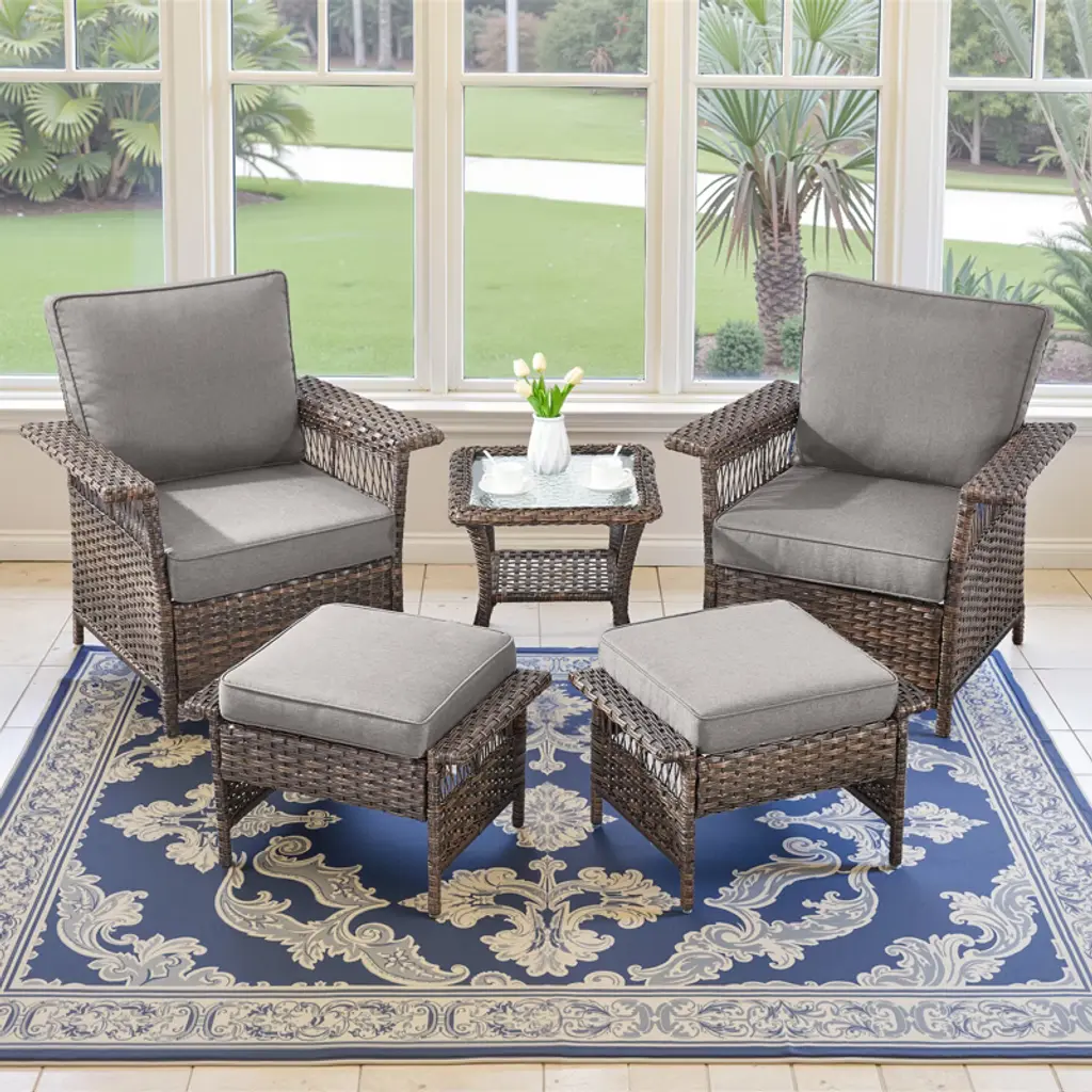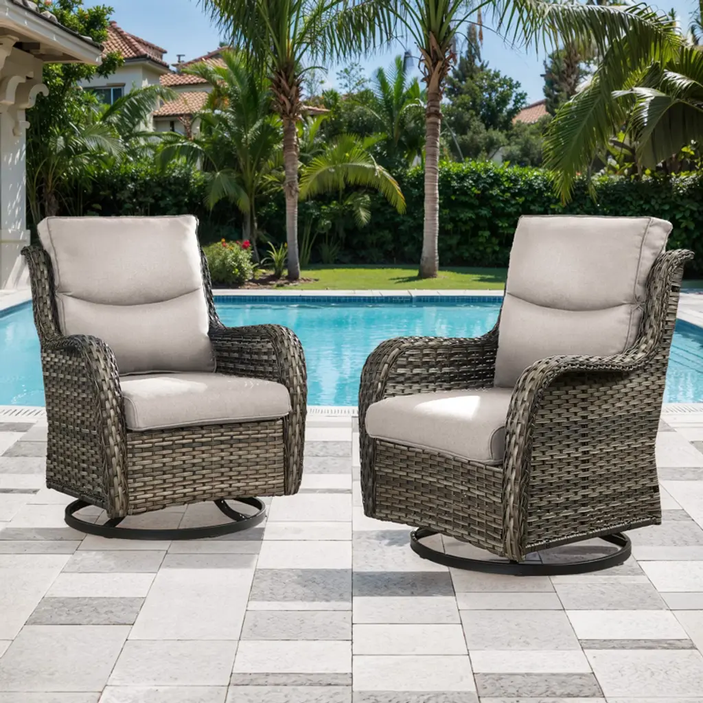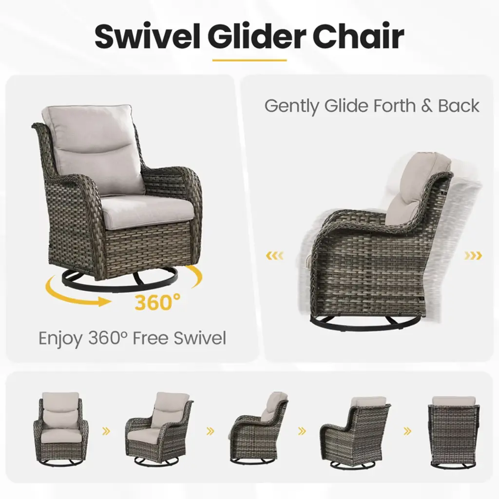 Relax in style with this premium 3-piece wicker rocking chairs set! Featuring thicked 5-inch cushions, high back, smooth 360¡ã swivel & glide motion, and a durable all-weather PE wicker design, this outdoor swivel rocker seating with side table delivers unmatched comfort and elegance. Perfect for your patio, garden, or poolside!