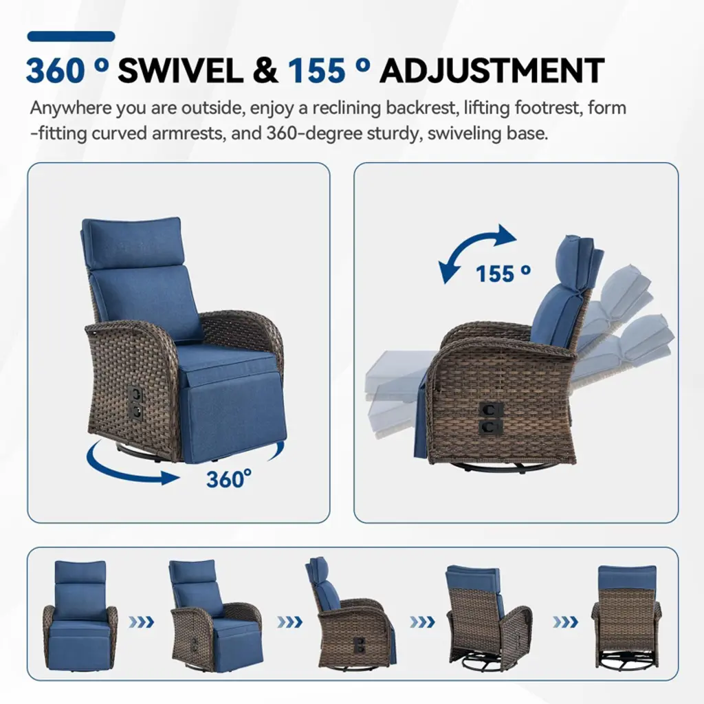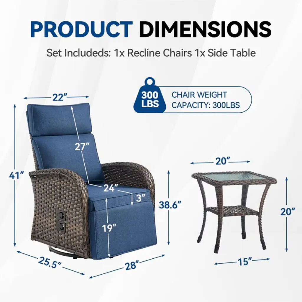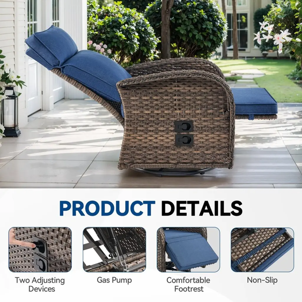 Relax in style with the Buenhomino 2-Piece Wicker Patio Set! This outdoor recliner chair with side table features a 360° swivel & adjustable reclining back (108°-155°), all-weather PE wicker, and thick cushions. Perfect for poolside lounging, garden relaxation, or backyard entertaining durable, comfortable, and easy to maintain!