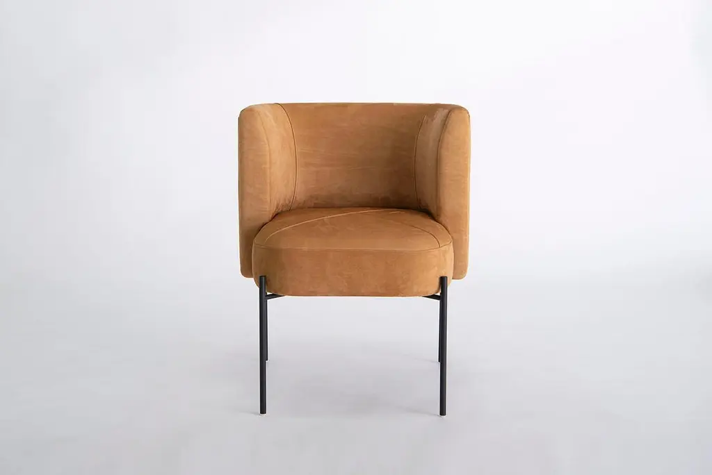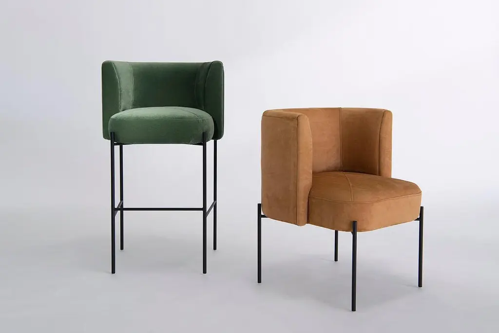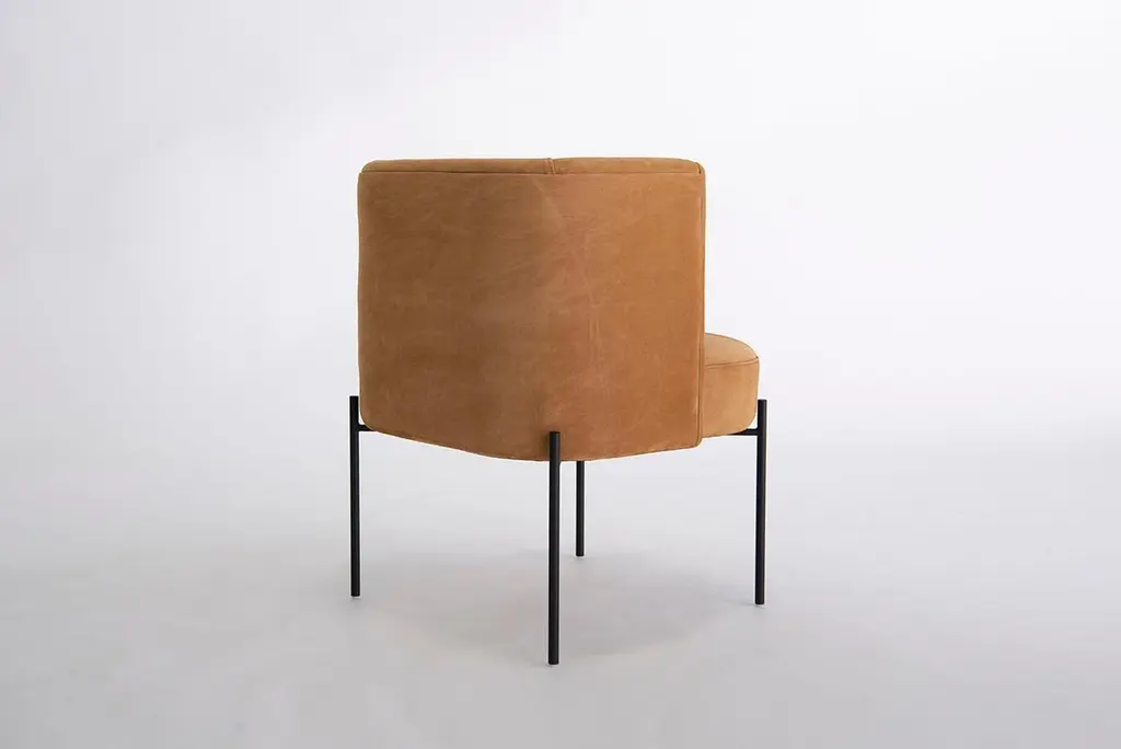 Listed price is for the Capper side chair with metal base- in powder coat (Flat Black or Flat White) and Cottswald by Moore & Giles nubuck. COL is also available, with a List price of $ 2,840.00.The Capper Side Chair with Metal Base is also available in fabric, with a List price of $ 3,418.00 in Comfort Zone by HBF fabric, and $ 2,810.00 in COM.Prices exclude packing. Collection of sofas, lounge chairs, side chairs, and stools with common design language of capped tops and formed back rest system. Lounge chairs can be specified with swivel or static base, metal base, or metal base with attached side table. Side chairs are offered with fully upholstered swiveling or static base or metal base. Stools are offered in both bar and counter sizes. This collection offers a seating option with distinctive personality, various options, and cradling comfort.Solid steel bar available in flat black or flat white, with upholstered top. Powder coat finishes are available in custom colors. Upholstery may be sourced COM, COL or suggested fabrics and leather. (COM requirements= 4 yards).