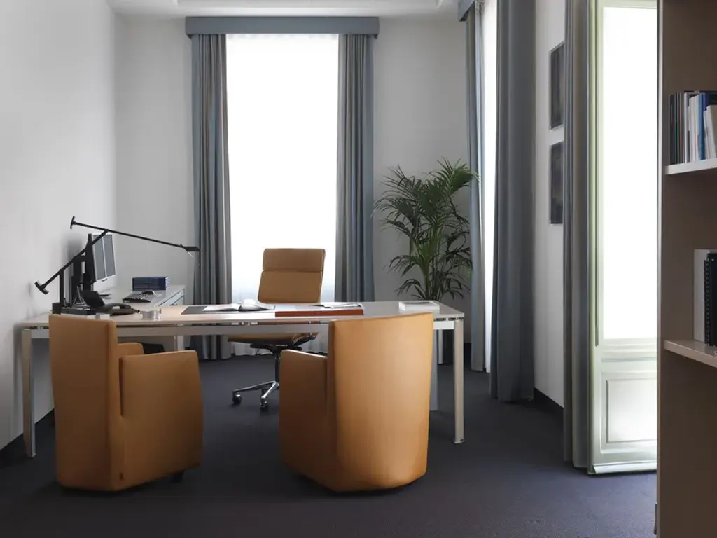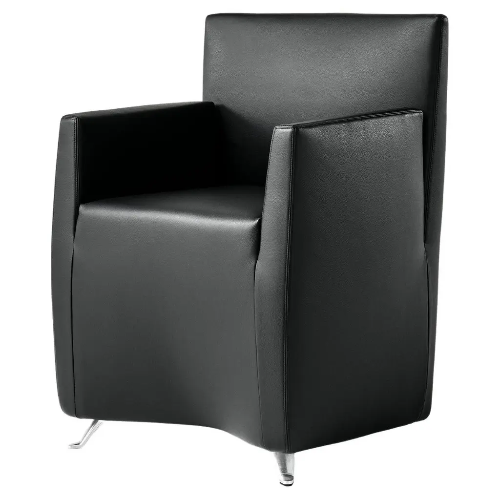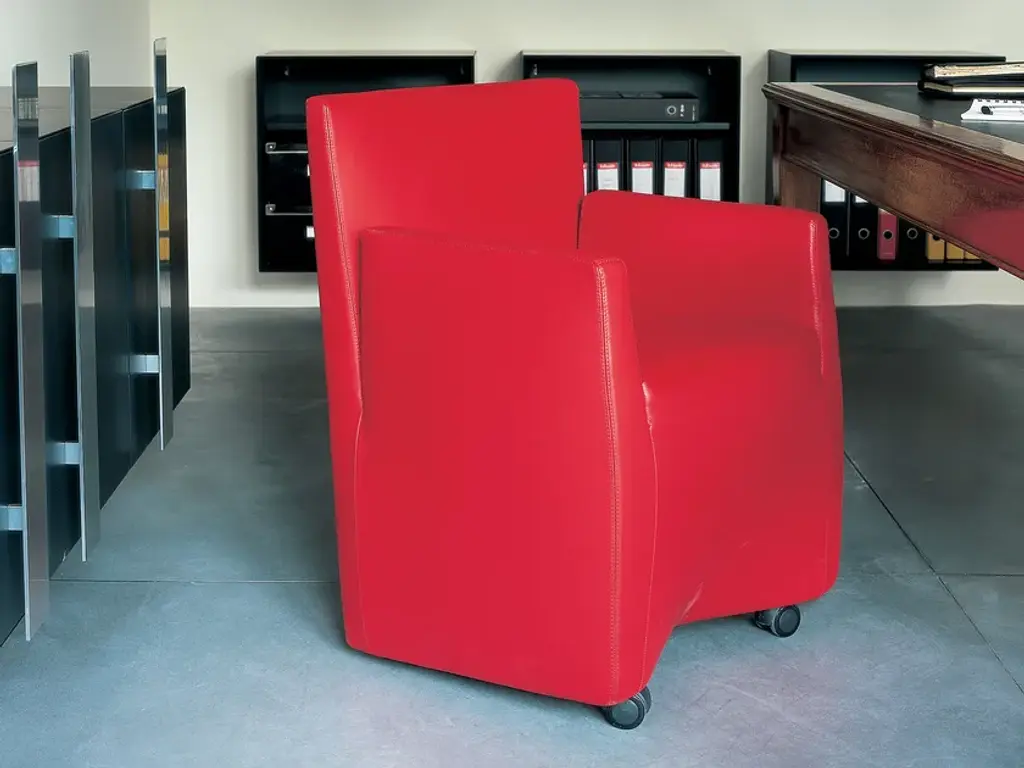 Caprichair is a precise idea: function perfectly expressed. A playful, almost anthropomorphic form, a serendipitous example of details and small finishing touches. Its formal and conceptual idiom wavers, at times dominating, at time relaxed. Caprichair is the first of a family of products which can be utilised both in the home and in the office.Armchair with reclining back, inner rigid structure with composite material certified REMADE IN ITALY® and flexible polyurethane filler. Front brushed die-cast aluminium feet. The rear is supported by three moving swivel rubber castors covered in polyurethane.