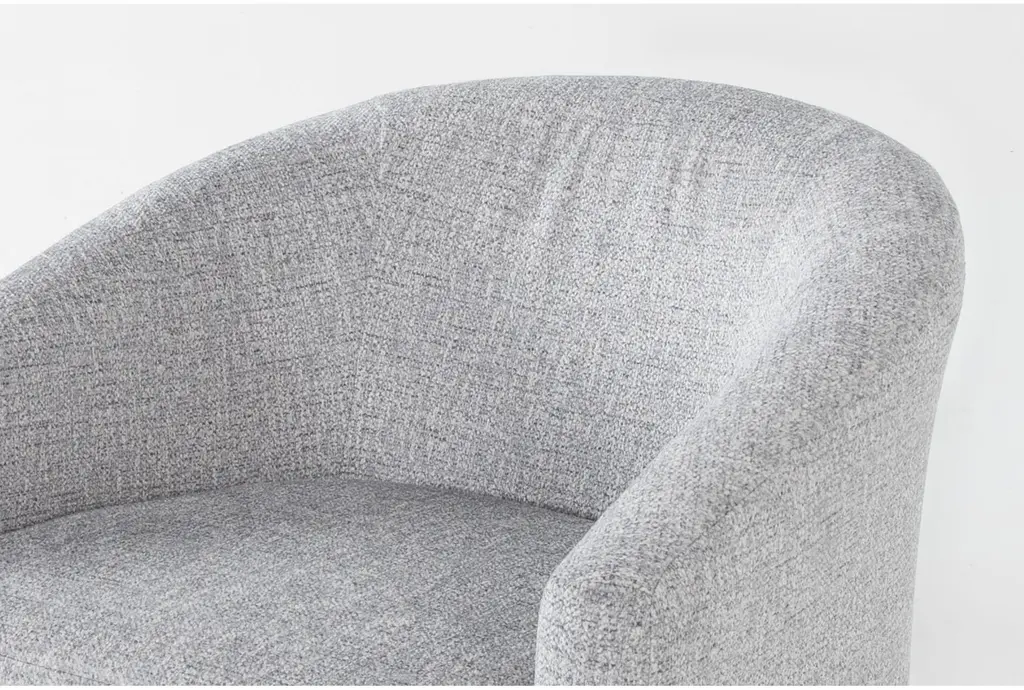 Experience modern comfort with the Carlisle Grey Swivel Barrel Arm Chair set. This set of two chairs is designed to enhance your living room with their sleek, contemporary style. Upholstered in soft graphite polyester fabric, these chairs offer both durability and a neutral aesthetic that complements any décor.
