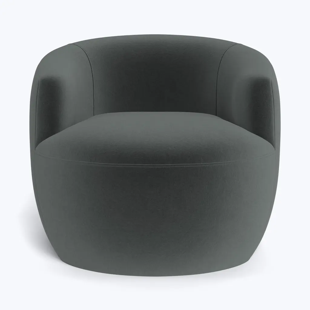Introducing the perfect blend of bold design and luxurious comfort: the Carrie Swivel Chair. The elegance of Italian design, crafted in the USA This piece features a beautifully rounded, spherical shape that exudes modern elegance, making it a standout addition to any room. The chair's robust shoulders create a captivating silhouette, offering both visual interest and a supportive embrace.The fully upholstered seat is meticulously crafted for comfort, constructed around a sustainably-sourced Goodwood frame. The smooth swivel base adds a touch of functionality, allowing you to effortlessly rotate and engage with your surroundings. Whether you're creating a cozy reading nook or adding a statement piece to your living space, the Carrie Swivel Chair offers elevated style & functionality. abc Cobble Hill offers over 80 color and fabric combinations, empowering you to fully customize the upholstered furniture of your dreams entirely online.