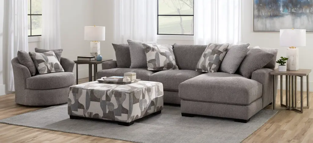 The on--trend accent chairs upholstery makes it cozy, easygoing and versatile, while the accent pillows give it a punch of graphic nostalgia.
