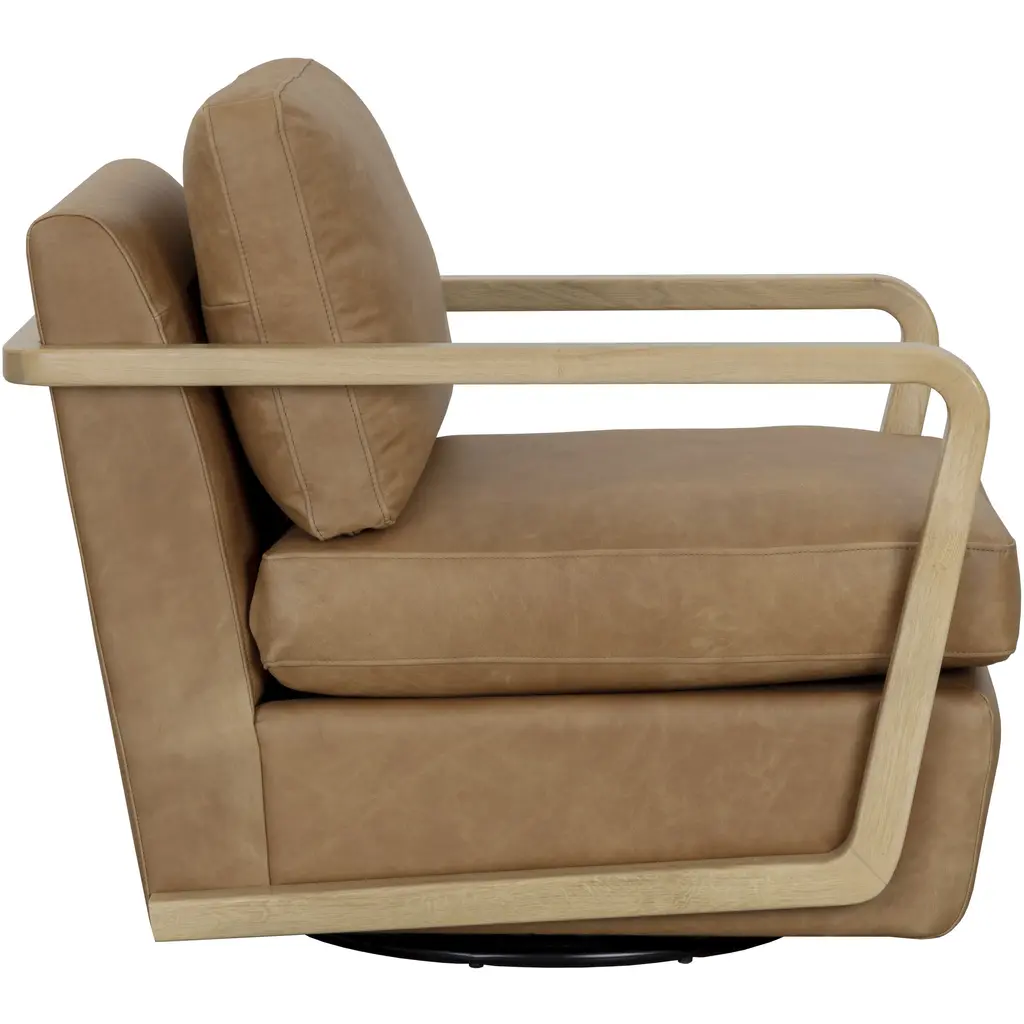 Castell Rustic Oak / Ludlow Sesame Leather Swivel Lounge Chair, Swivel
