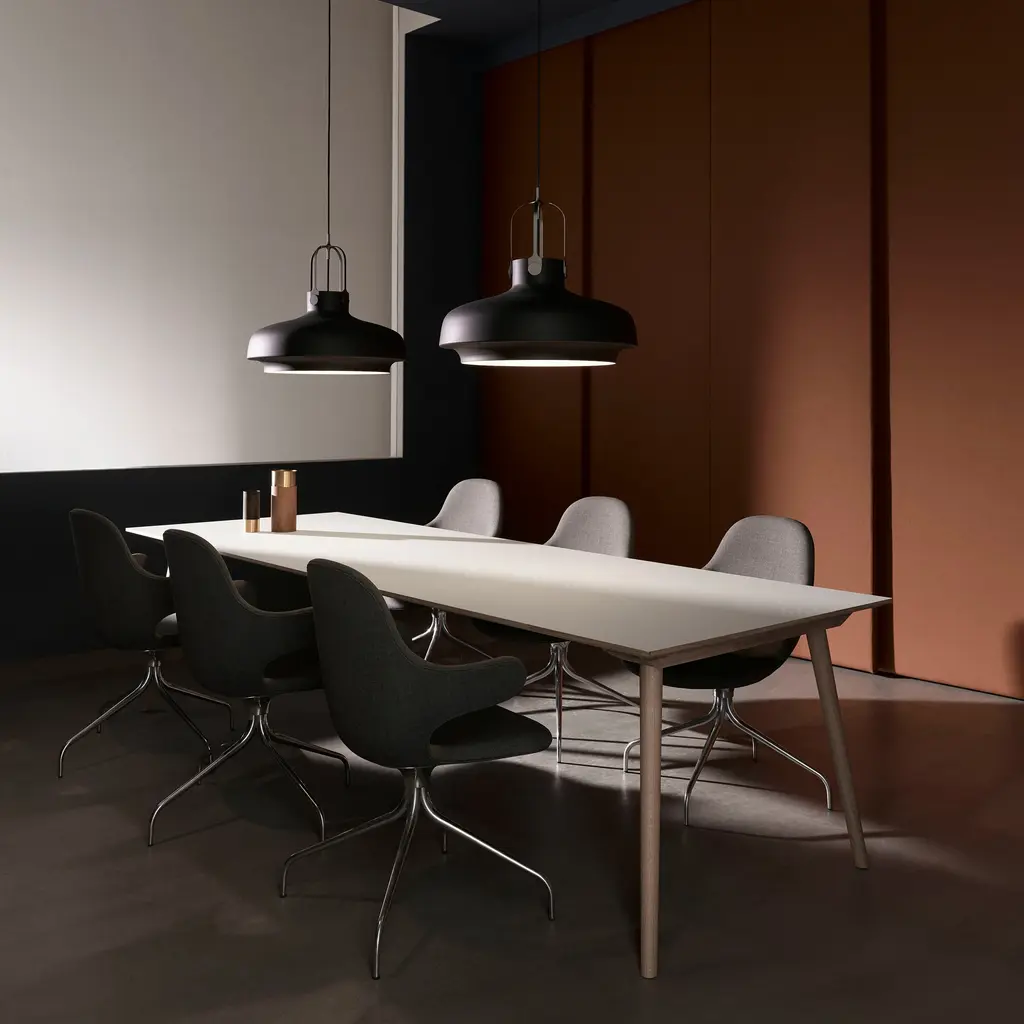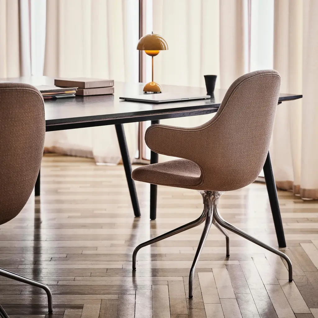 That Catch Chair, Jaime Havon's first contribution to &Tradition was a bonafide hit, among its honors taking Best of the Year award from Interior Design magazine. The follow up-is the Catch Chair JH2, an option with a swivel base. With the original seating shape that has been likened to an open embrace, the new swivel base enhances the chair's light and playful expression while upping the versatility, especially for use at a desk or table. The serpentine swivel base is cast aluminum and the shell is made from molded polyurethane foam with fiber reinforcements, covered in cold-cured foam and available in a range of textile and leather upholstery choices.Jaime is a rock star in the modern design arena, having collaborated with Bosa Ceramiche, Camper, Lladro and a host of interior and architectural work around the world. He brings a signature whimsy to his work, yet always considering that design is also about living with the stuff. What we love most about Jaime is his design ethos: it's about creating happiness. We couldn't agree more.