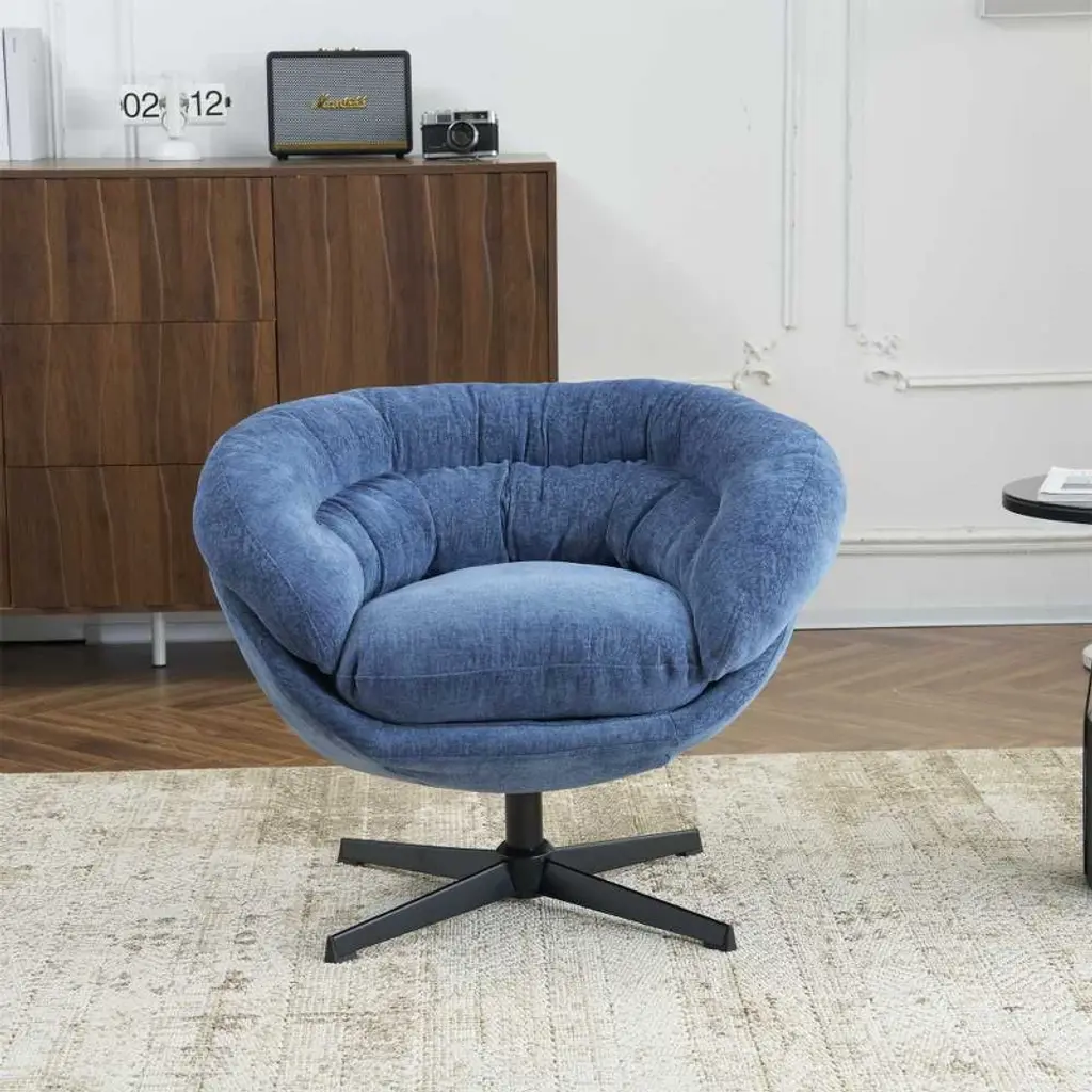 Cavinas Chenille Upholstered Accent Chair With Metal Base Frame,modern Swivel Chair With Removable Cushion For Bedroom,reading Room,navy Blue